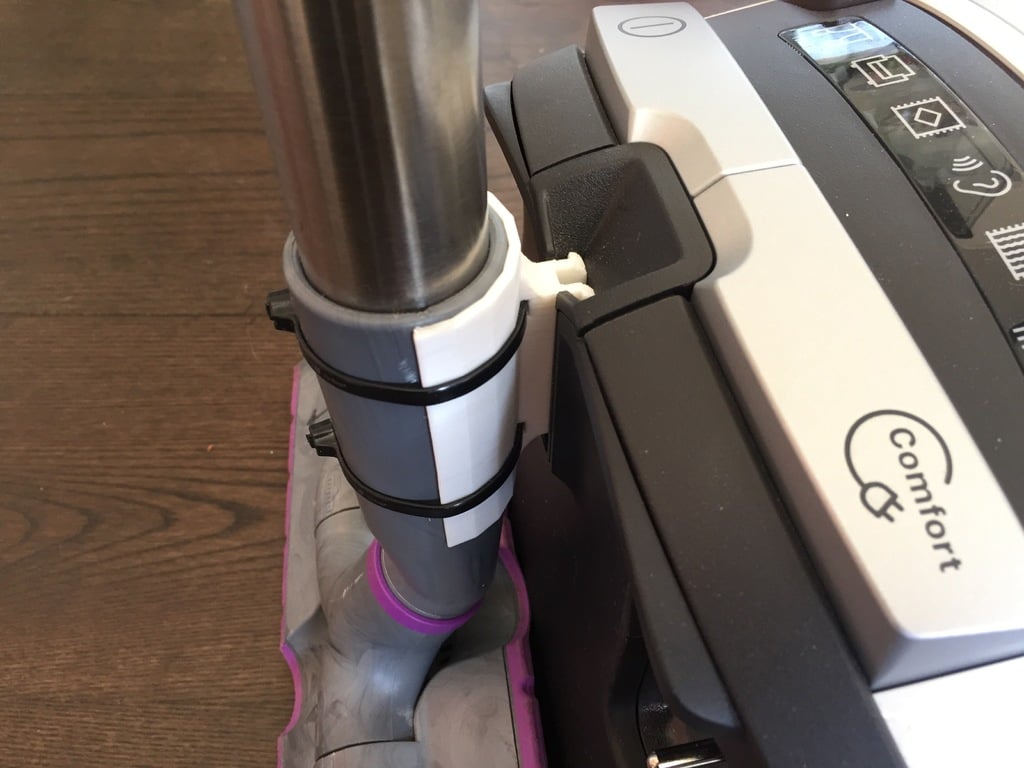 Twinner-munstycket är ett måste för alla dammsugare. Jag har gjort ett enkelt fäste för parkeringsplatsen på baksidan av Miele C3. Denna adapter ökar effektiviteten och bekvämligheten av din städrutin genom att tillhandahålla enkel och säker förvaring av ditt Miele C3-dammsugarhuvud när det inte används.