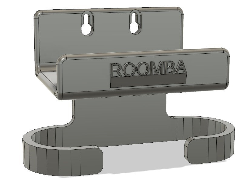 En hållare för en Roomba docka så att den kan fästas på en vägg.