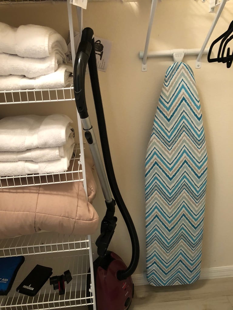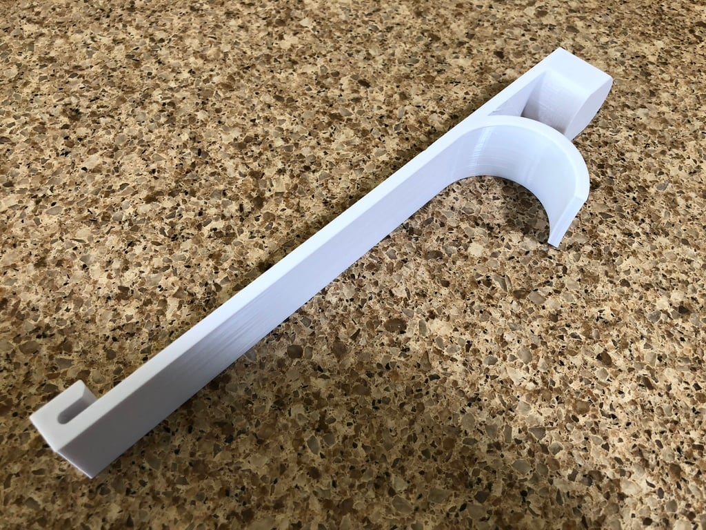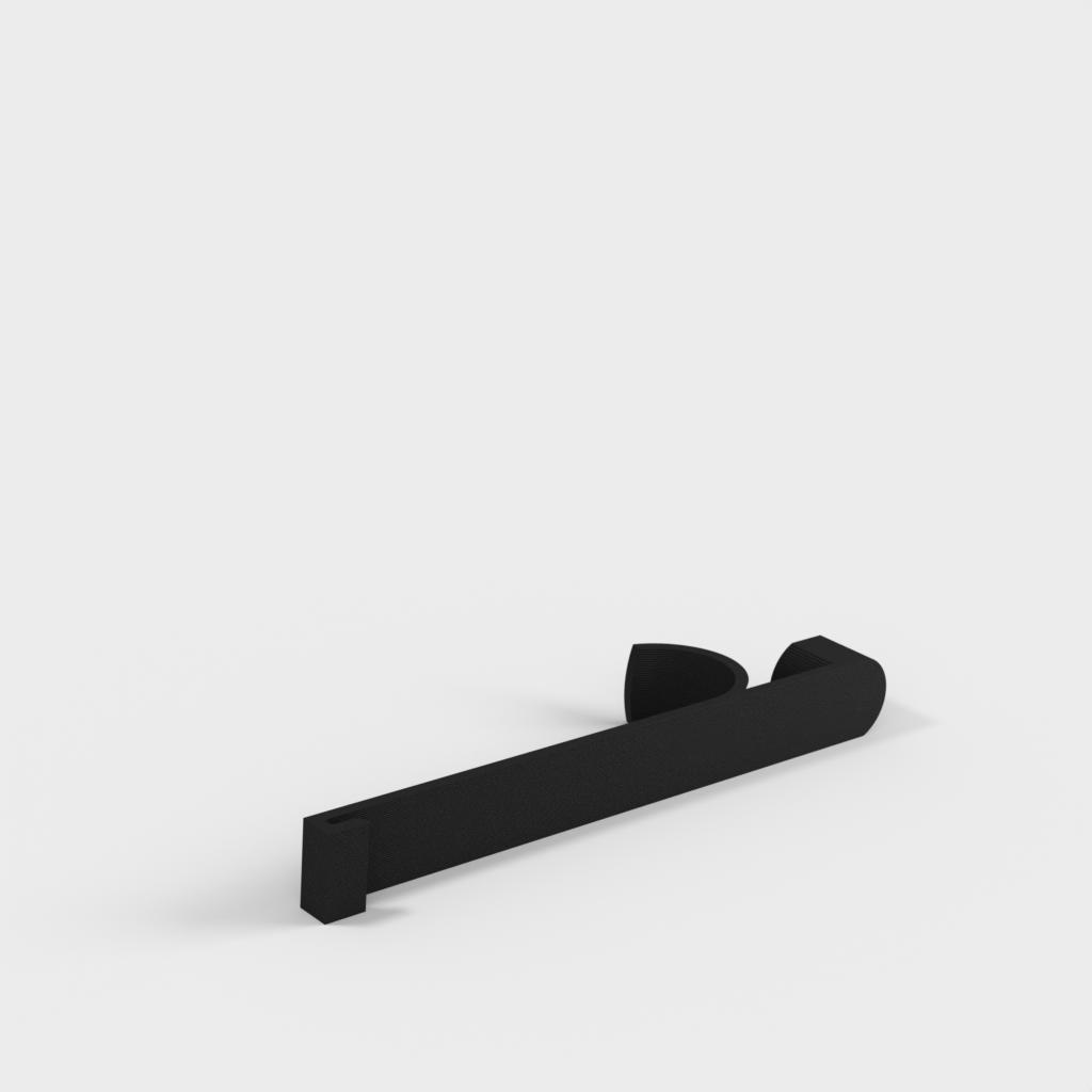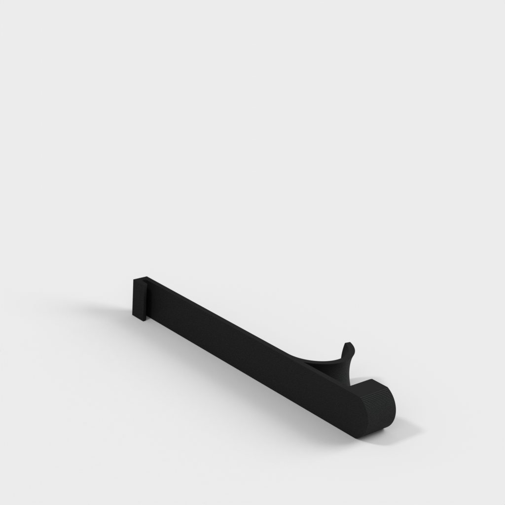 Vägghållare för en vanlig dammsugarslang. Den kan enkelt hängas på en 3 mm trådskåpshylla. Har även extra förvaringsutrymme för dammsugarens tillbehör.