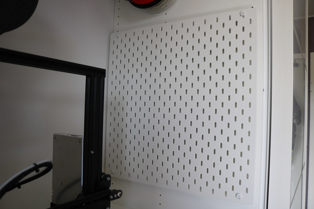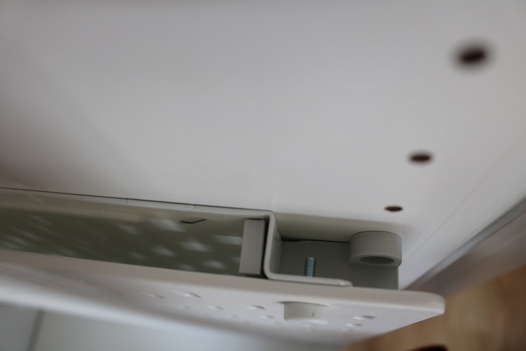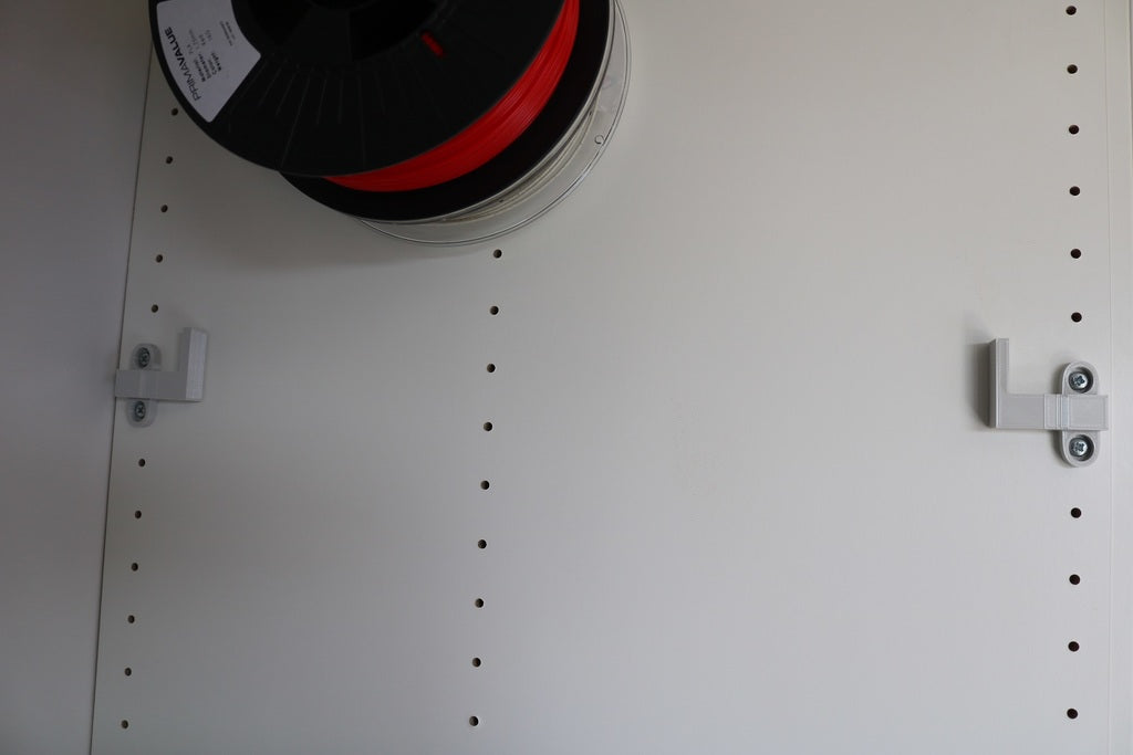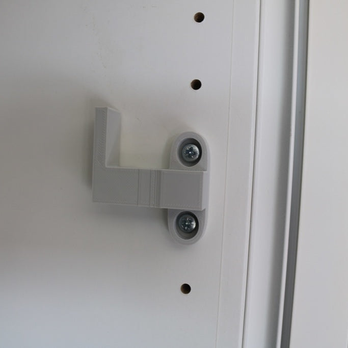 Väggfäste för att hänga upp en Ikea-byrå i en pax-garderob med hjälp av originalskruvhålen.