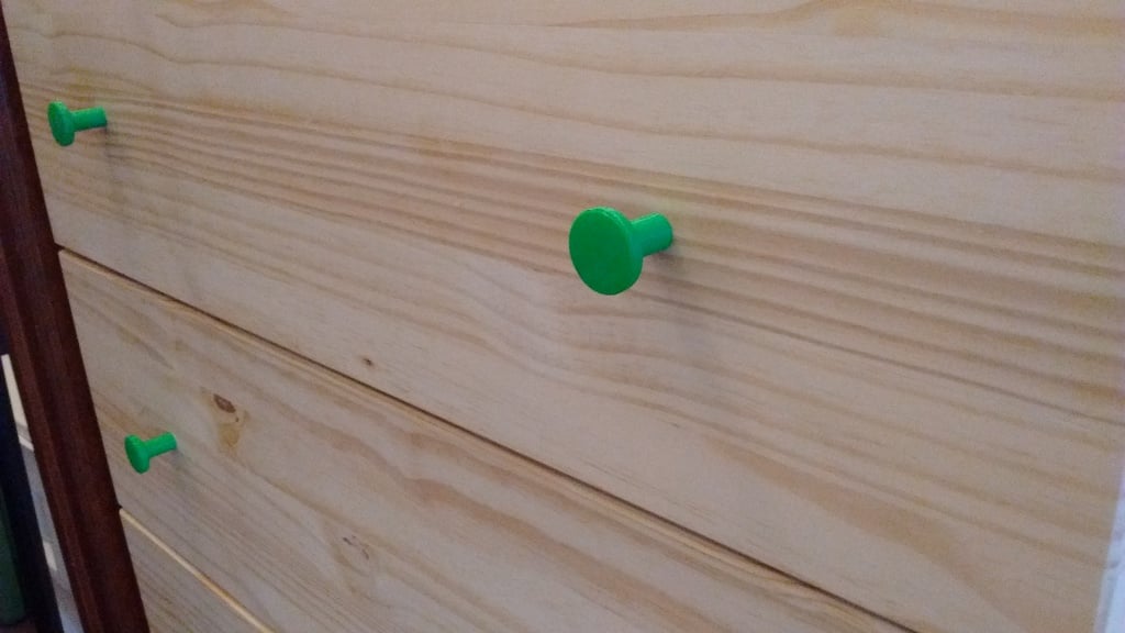 Detta är en ersättningsknopp för en IKEA Tarva byrå. Den kommer förmodligen också att fungera som handtag i många andra applikationer. Används bäst med storlek 5 eller 6 träskruvar.