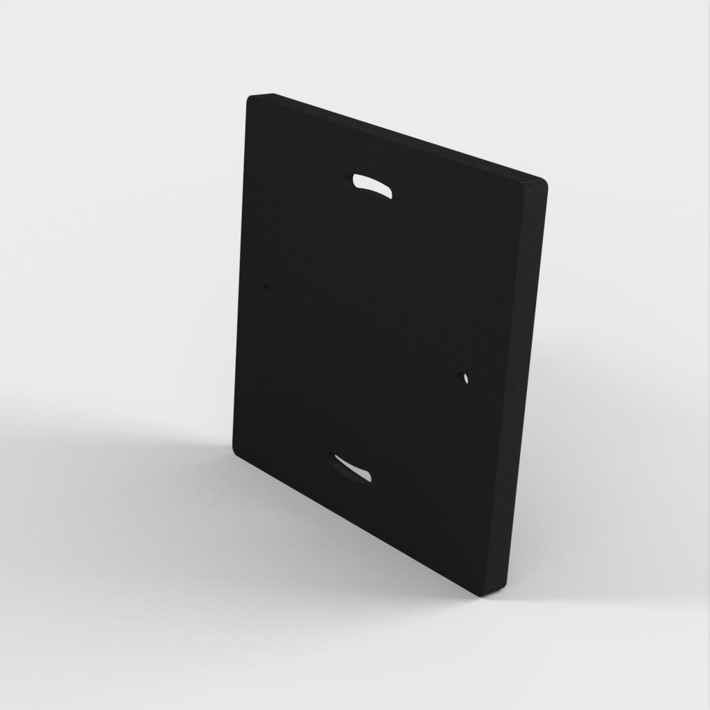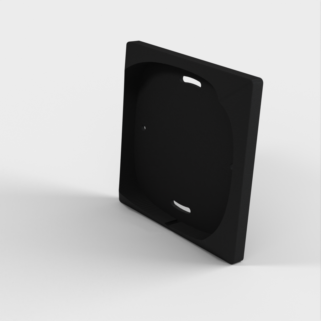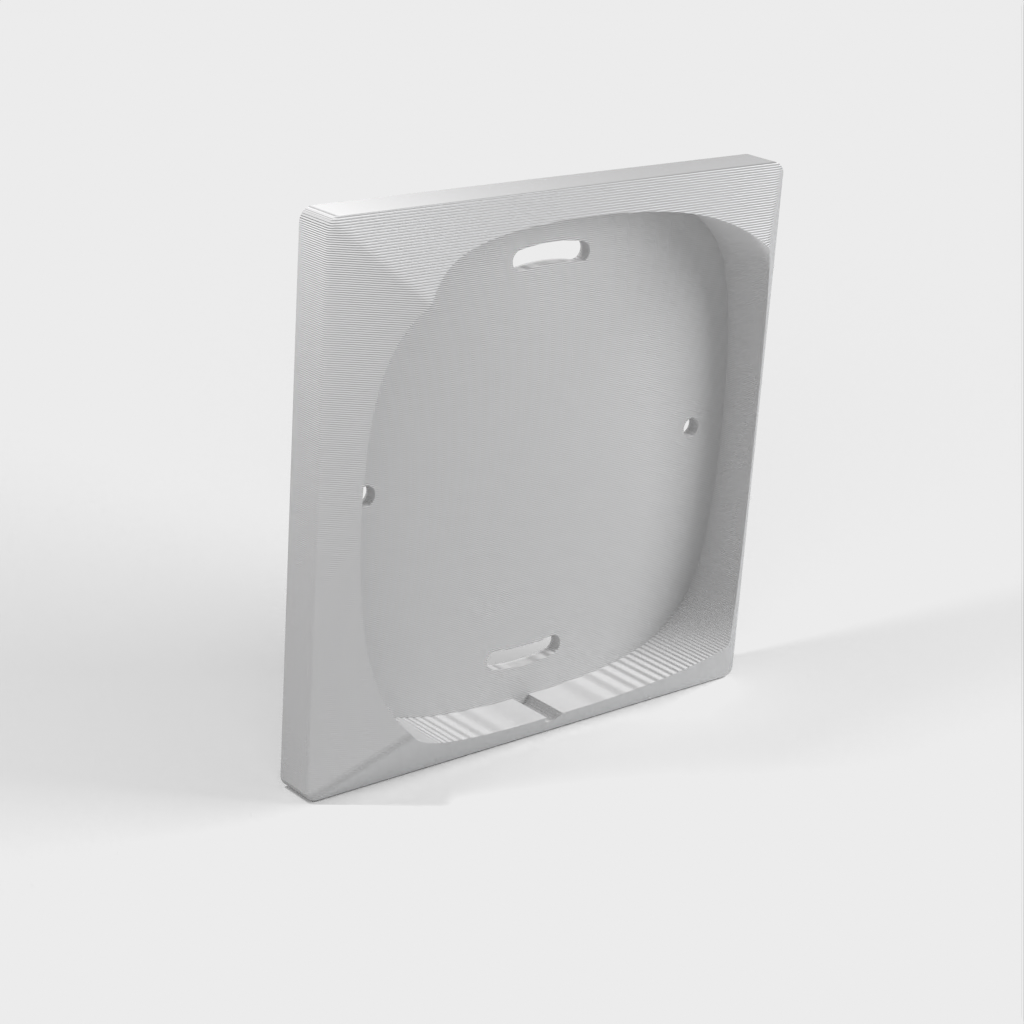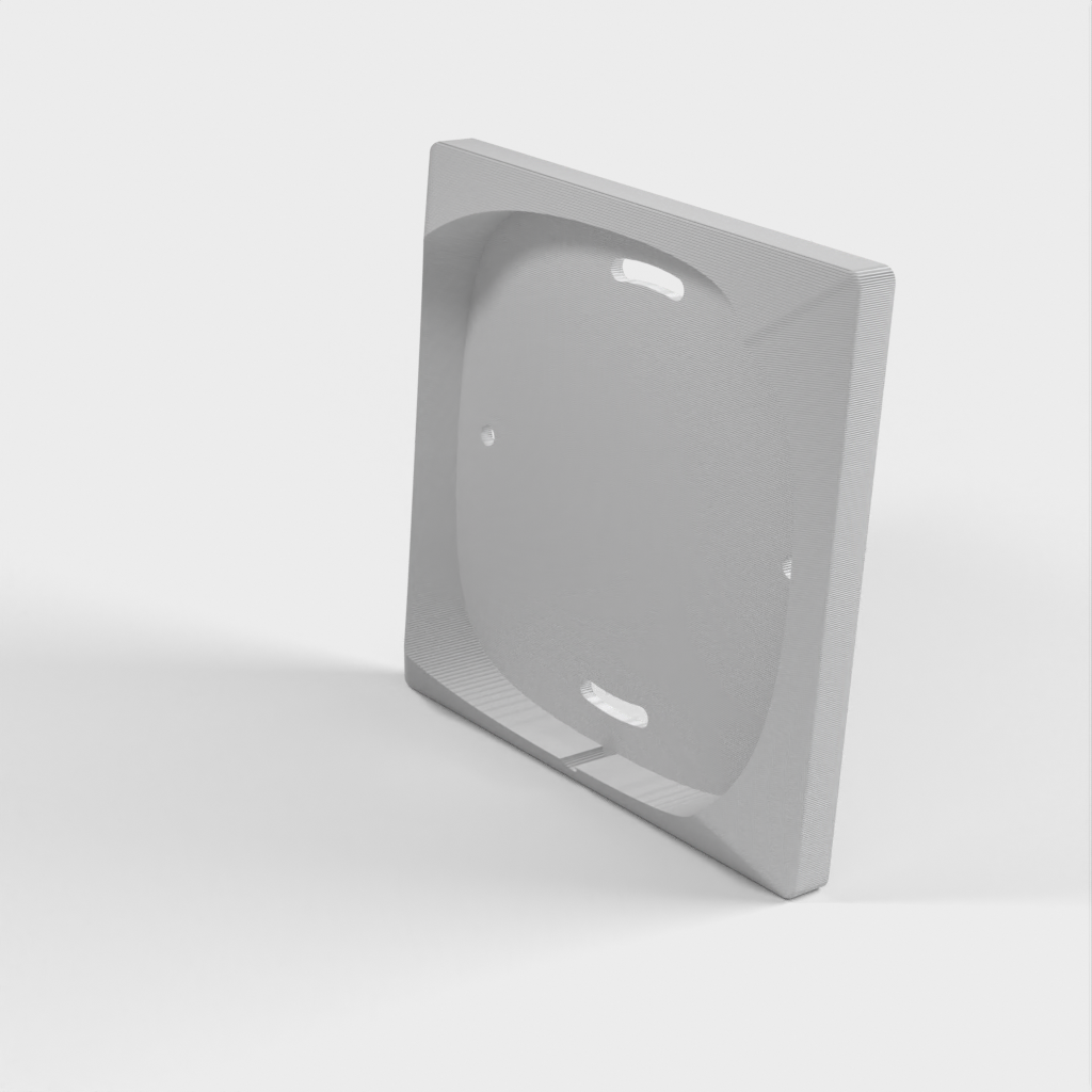 STYRBAR Väggfäste är ett fäste för IKEAs STYRBAR smarta hem-fjärrkontroll, designat för att enkelt ersätta den normala ljusströmbrytarens placering. Denna modell har hål för att montera den på en standard "Unterputzdose" (~inbyggd låda). Och eftersom vår är sned i väggen är de vertikala hålen slitsade.