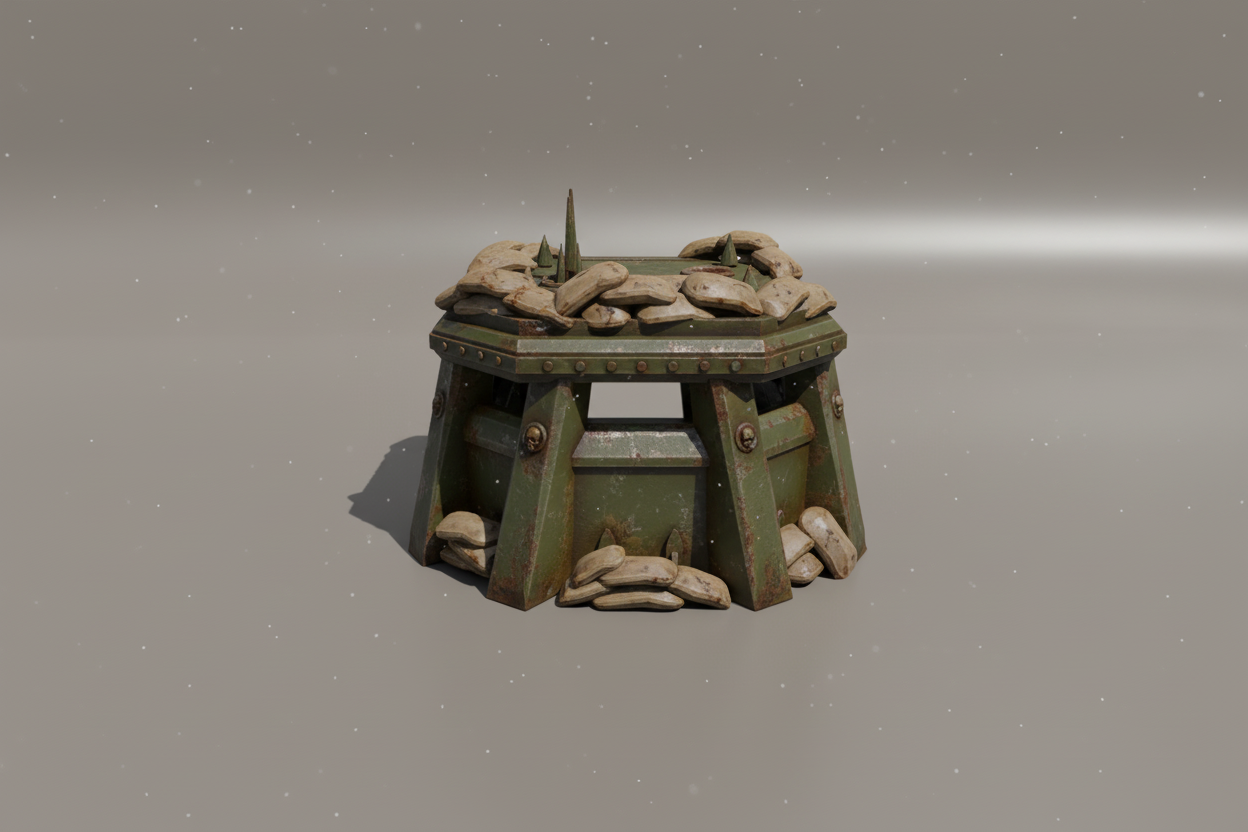 Denne Pillbox med Sandposer er designet til grimdark tabletop wargames og tilbyder strategisk dækning og beskyttelse til dine enheder. Den tilføjer realisme og visuel autenticitet til dine slagscenarier, hvilket forbedrer dybden i dit gameplay.