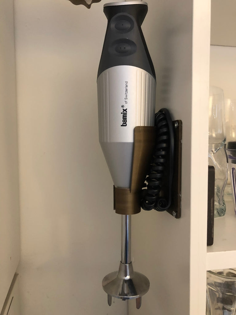 Vägghållaren för din Bamix matberedare är utformad för att optimera utrymmet i ditt kök. Denna praktiska lösning gör att du enkelt kan förvara din Bamix på väggen, så att den alltid är nära till hands när du behöver den. Hållaren har en kompakt design och är enkel att installera. På baksidan finns en smart funktion som fungerar som en sladdhållare, där du kan linda strömsladden säkert. Detta hjälper till att hålla din arbetsyta snygg och förhindrar kabeltrassel. Den robusta konstruktionen säkerställer att din Bamix matberedare står stabilt och säkert, och den integrerade sladdhållaren bidrar till en välorganiserad köksmiljö.