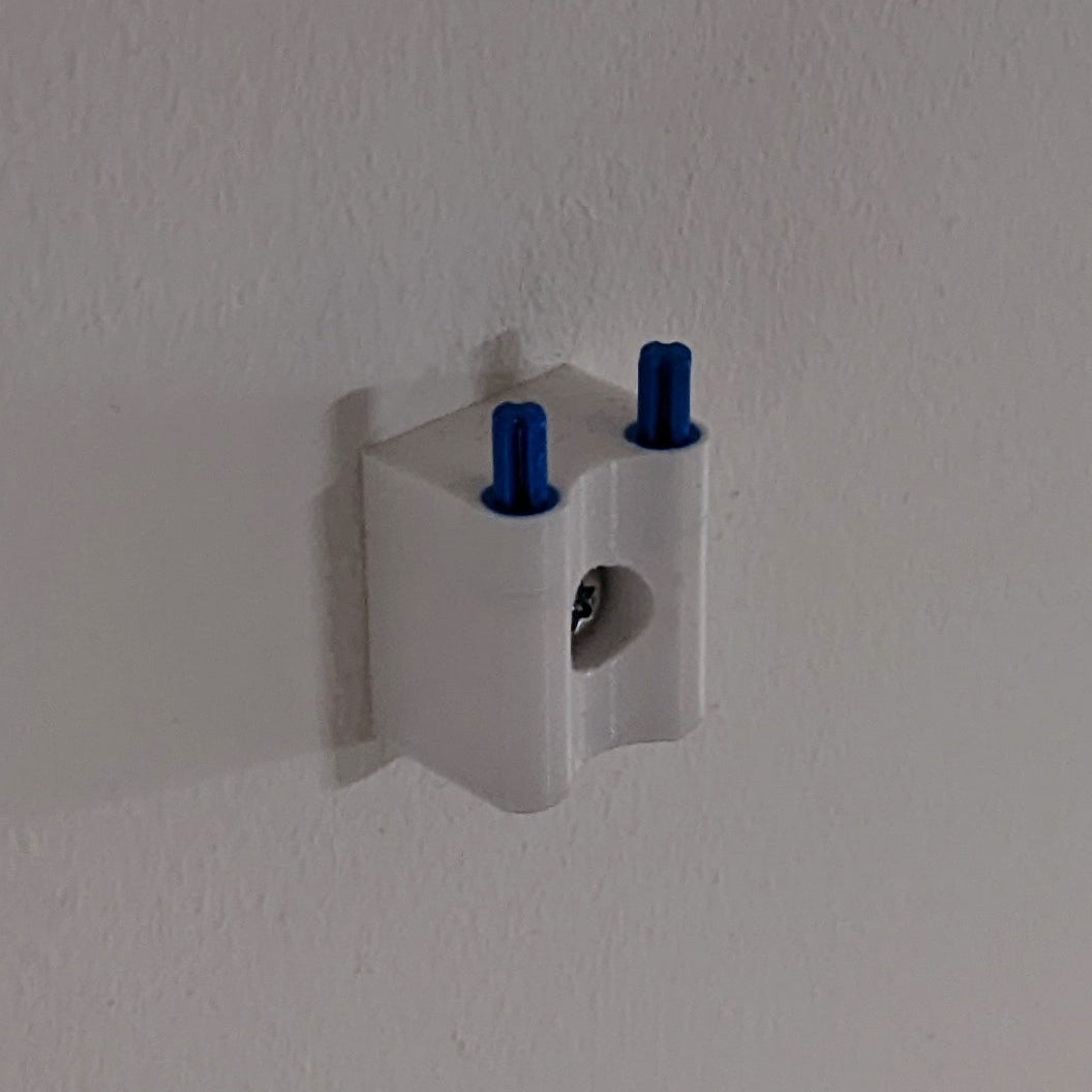 Monteringen är tryckt i vit Prusament PETG, men alla solida (icke-flexibla) filament bör fungera bra. Du behöver bara två av de blå LEGO Technic-stiften (du borde ha massor av dem som reservdelar i satsen) och en skruv för att fästa den på din vägg.