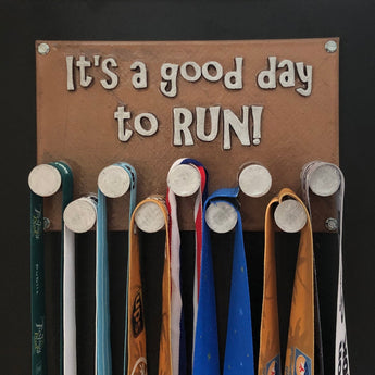 Vår Marathon-medaljhållare är den perfekta lösningen för att visa stoltheten över dina lopp. Denna medaljhållare är designad för entusiastiska maratonlöpare och ger en snygg och funktionell plats att hänga dina medaljer på. Den är idealisk för användning hemma, oavsett om den är i vardagsrummet, kontoret eller löparrummet, där du kan visa upp dina prestationer och inspirera dig själv och andra. Med en robust konstruktion säkerställer den att dina medaljer hänger säkert och i fin stil. Ett måste för alla löpare som vill fira sin maratonresa med stil.