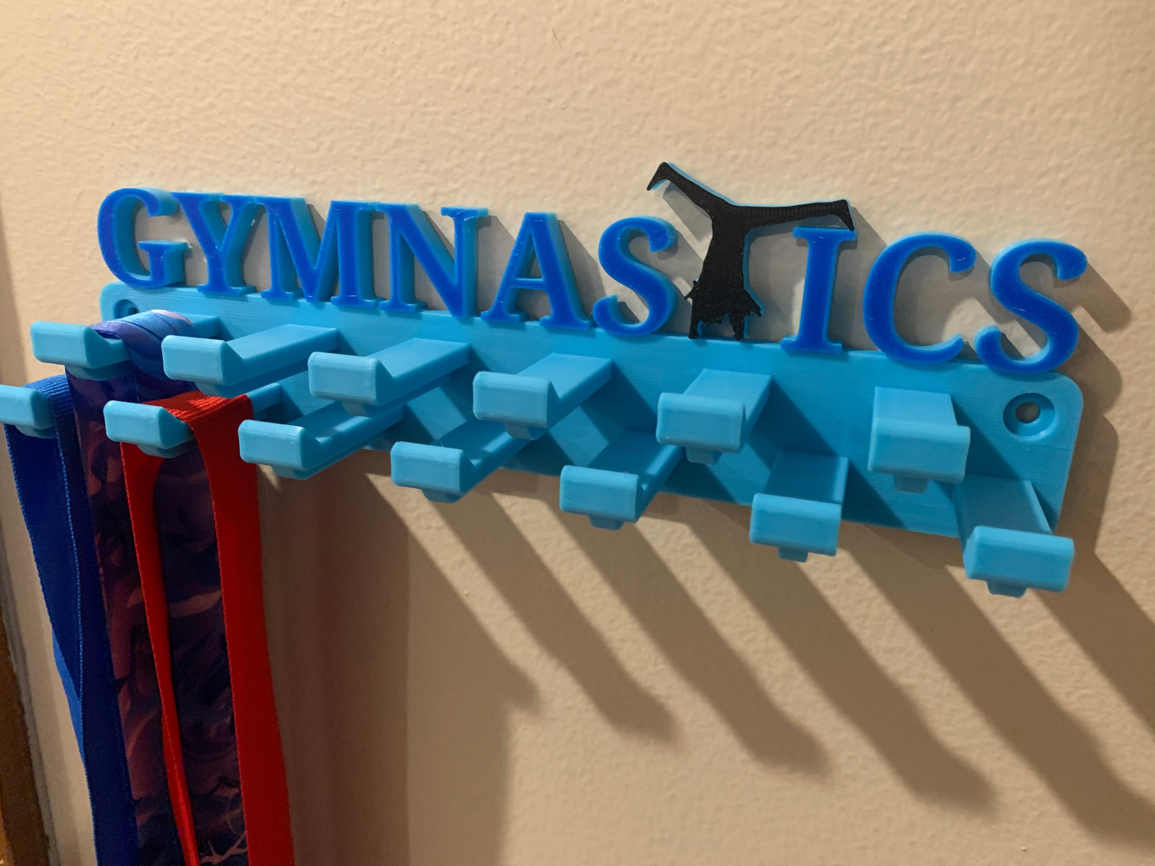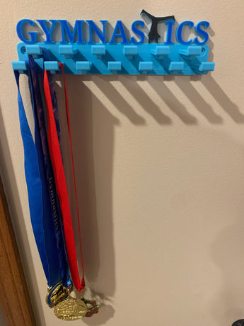 Håll ditt barns gymnastikmedaljer organiserade och snygga med denna medaljhållare designad speciellt för unga gymnaster. Denna medaljhållare ger ett roligt och inspirerande sätt att visa sina prestationer samtidigt som den lägger till ett gymnastiktema i rummet. Den kreativa designen, där "T" i hållaren representerar ett barn i en vilt spännande rulle, skapar en livlig atmosfär.