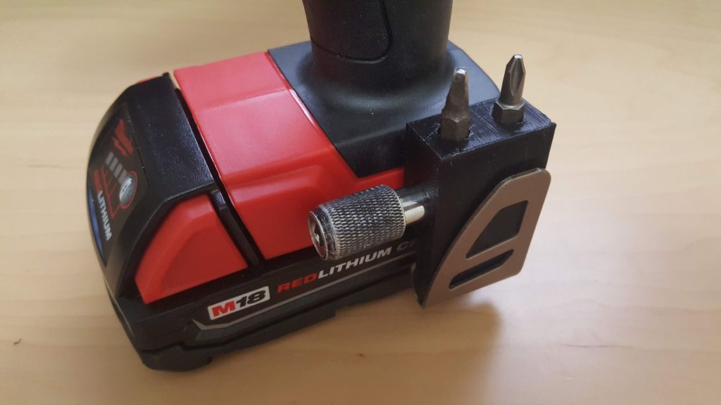 Bitshållare för bältesklämman på en Milwaukee M18 borr.