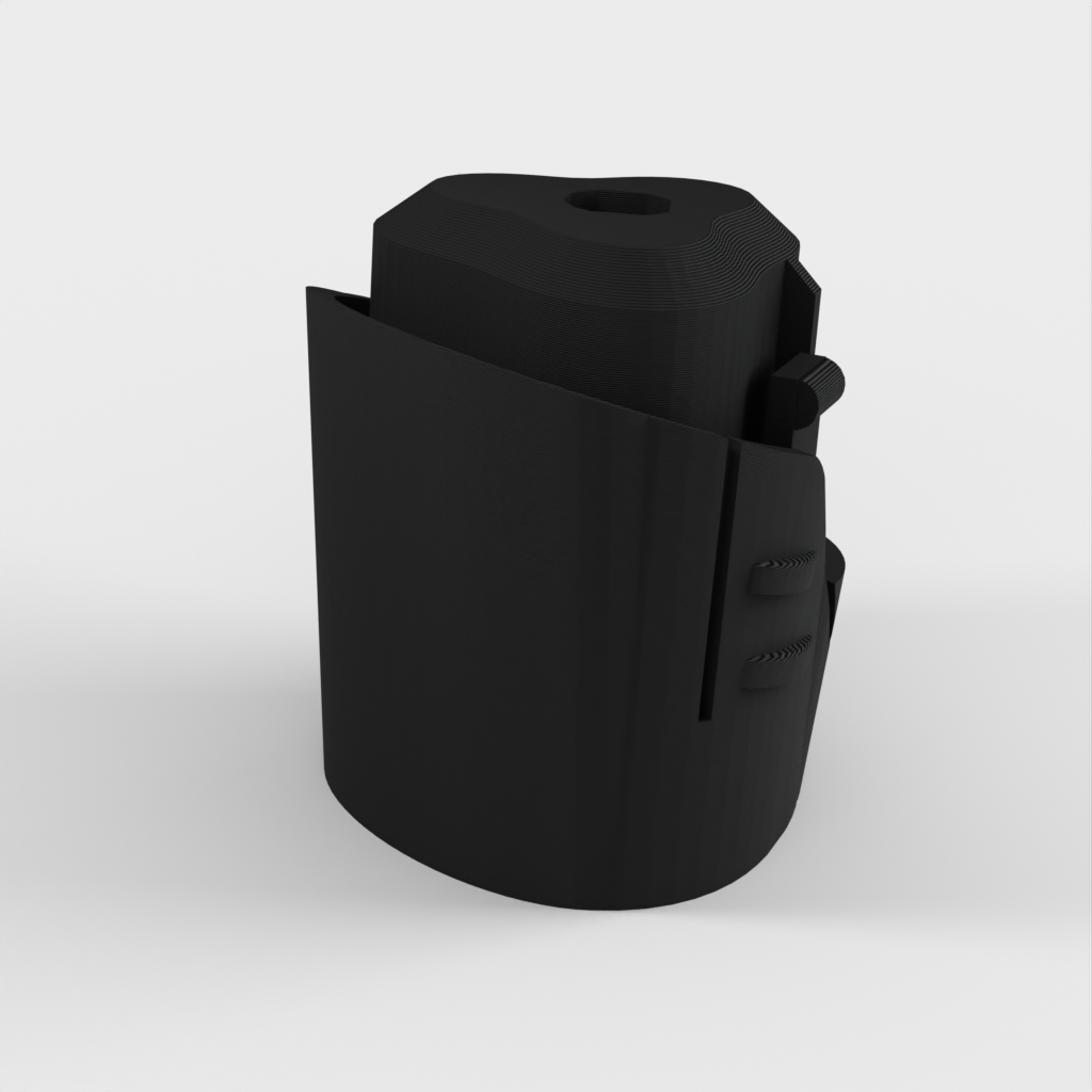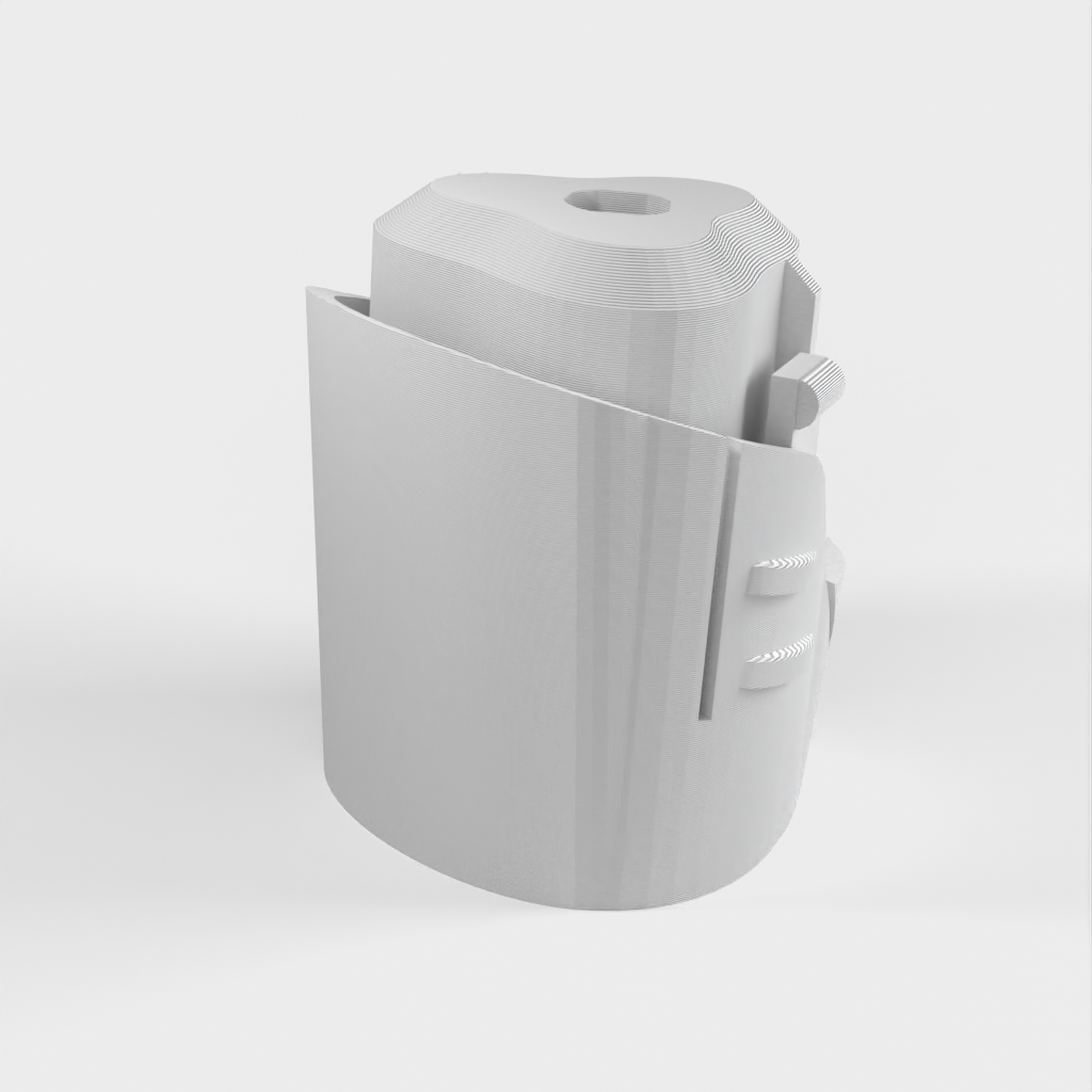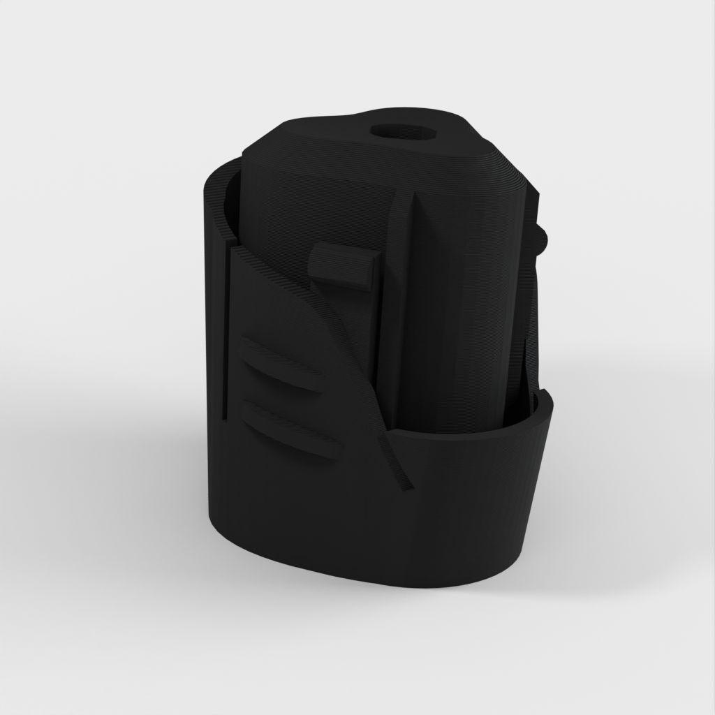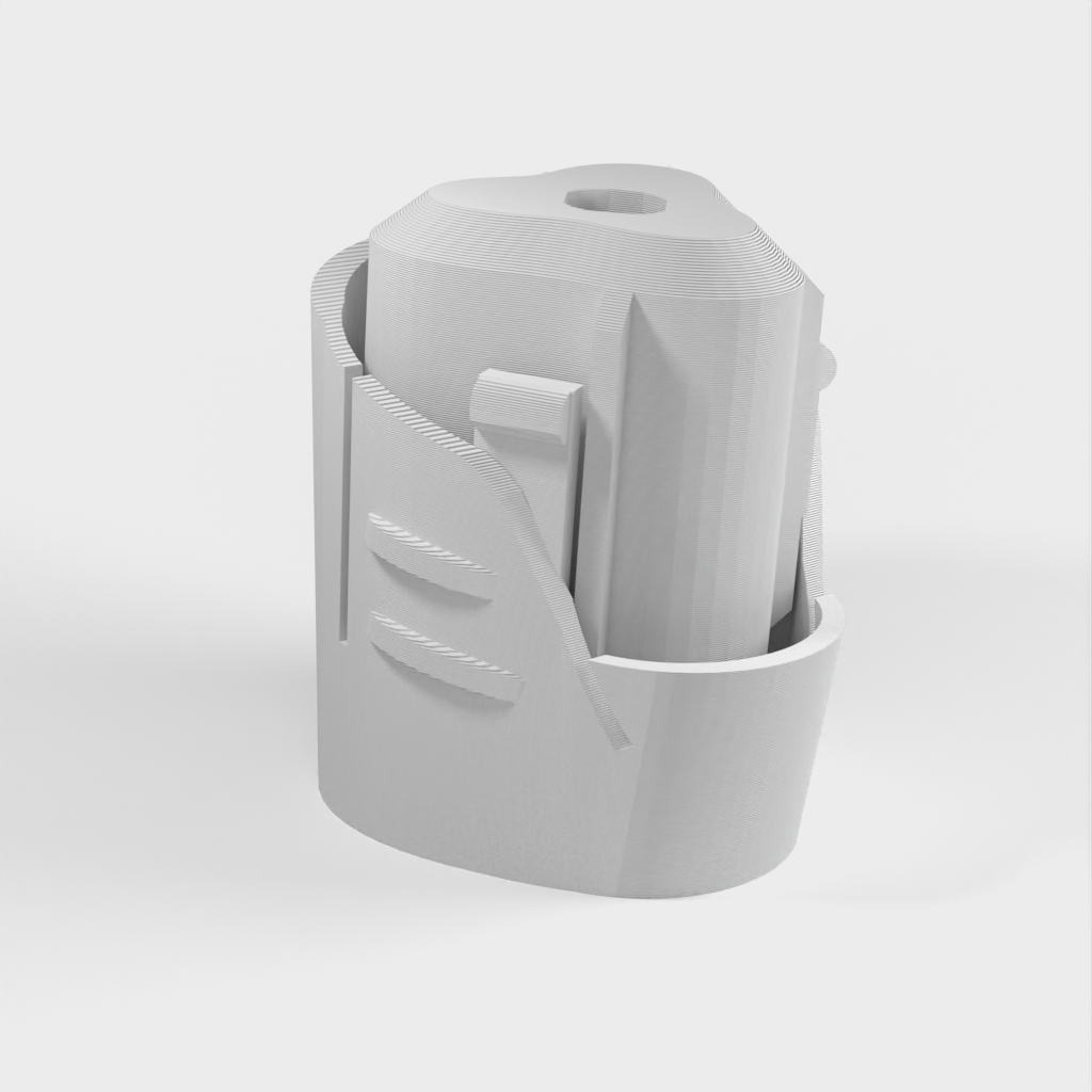 Enkelt väggfäste för ett Milwaukee M12-verktyg. Upphängningen använder hålet för batteriet och verktyget monteras därför enkelt på upphängningen.