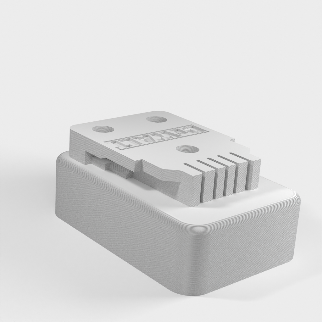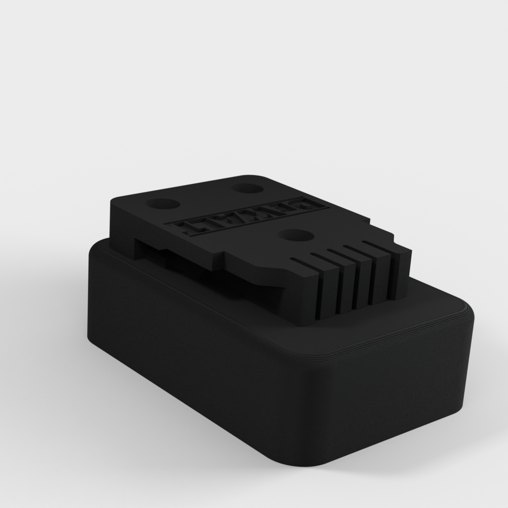 Detta är en enkel DeWalt-verktygshållare för borr/slag att hänga under en hylla eller bänkskiva, med tillräckligt med utrymme för att rymma kroken som normalt sitter på borr/slag etc.