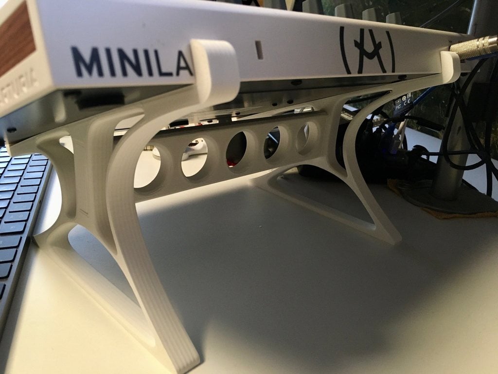 Arturia Minilab Mk II bordsstativ lutar ditt tangentbord, vilket gör kontrollpanelerna mer tillgängliga samtidigt som du använder utrymmet under. Stativet är tillräckligt stabilt för att hålla ditt tangentbord säkert, samtidigt som det har en slimmad och elegant design. Den är tillverkad för att passa inuti gummifötterna och undvika att skruvar sticker ut från botten. Två identiska vertikala delar och en tvärbalk ingår för enkel montering.