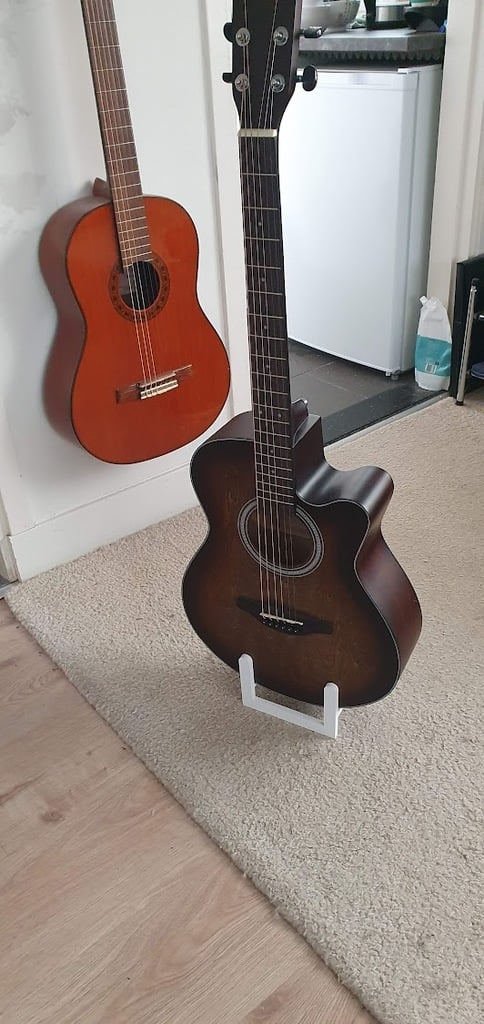 Enkelt gitarrställ designat för att förvara din gitarr på ett organiserat sätt. Detta gitarrstativ är perfekt för både ditt sovrum och ditt musikrum. Med sin robusta design säkerställer den att ditt musikinstrument är säkert förvarat när det inte används.