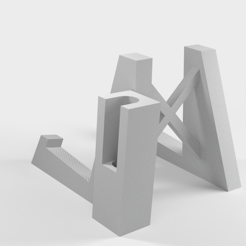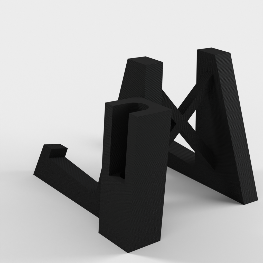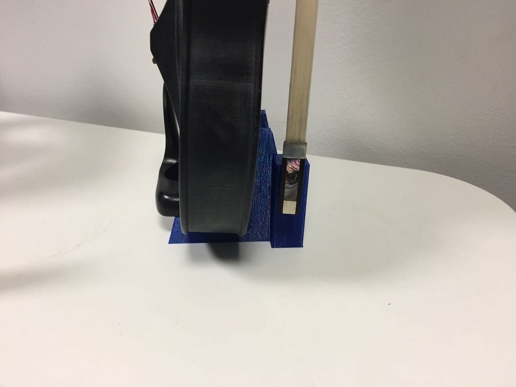 Ett stativ för en fiol som inkluderar en hållare för stråken.
