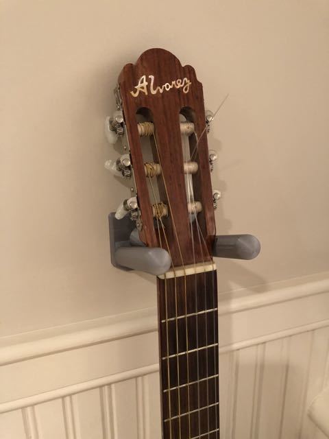 Denna hängare är designad för en klassisk gitarr med en hals som är 57 mm vid muttern. Ändringar är lätta eftersom det är en stl-fil.
