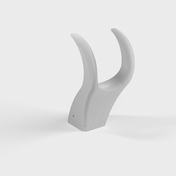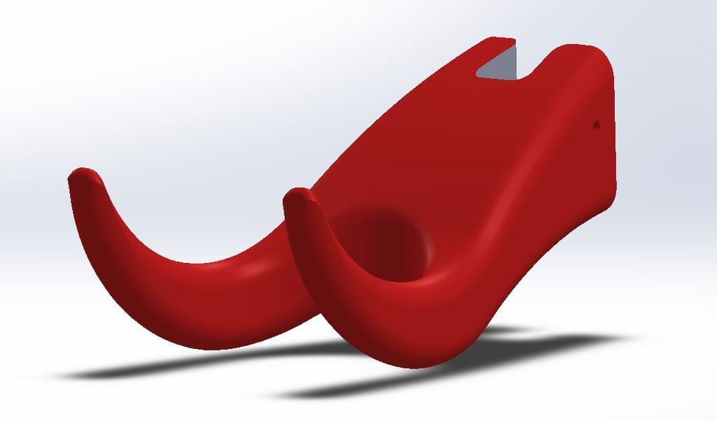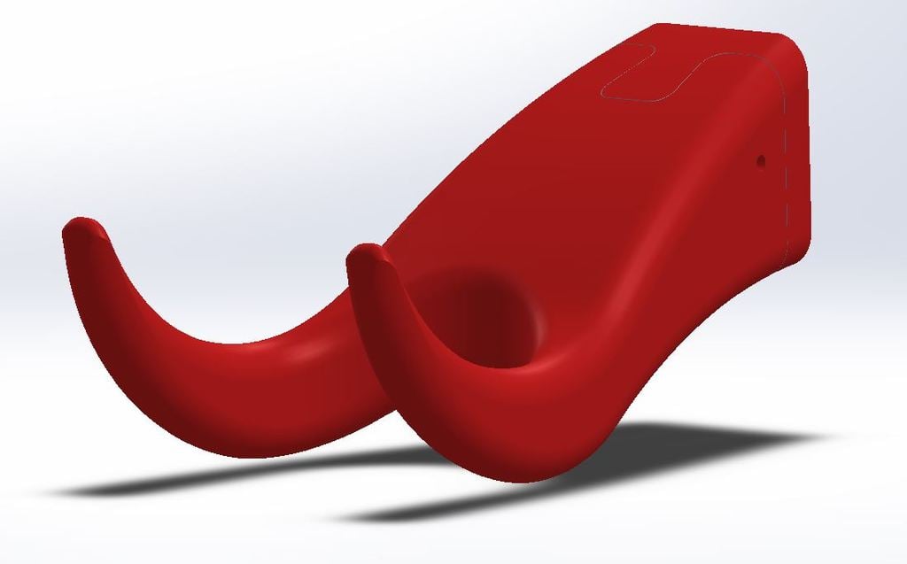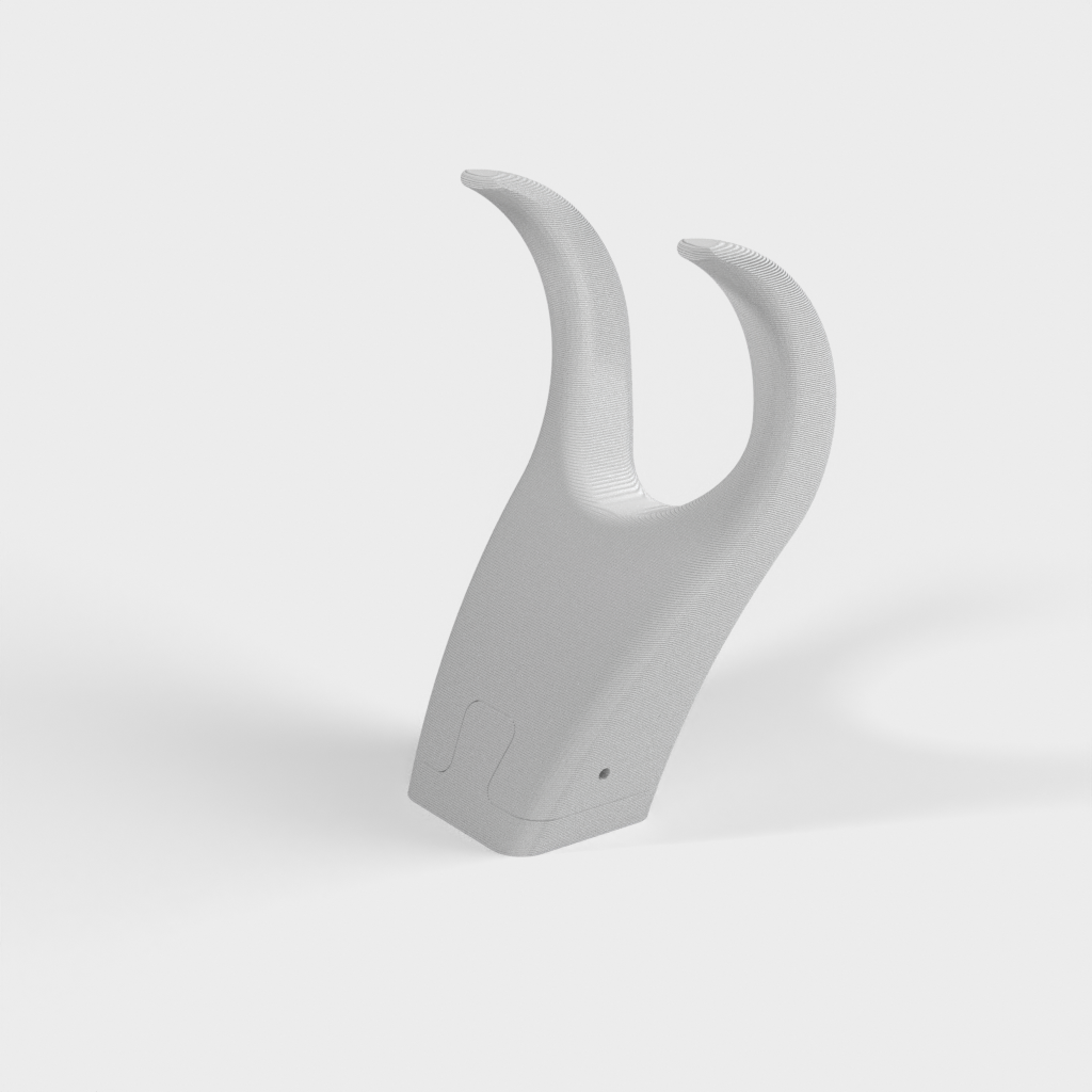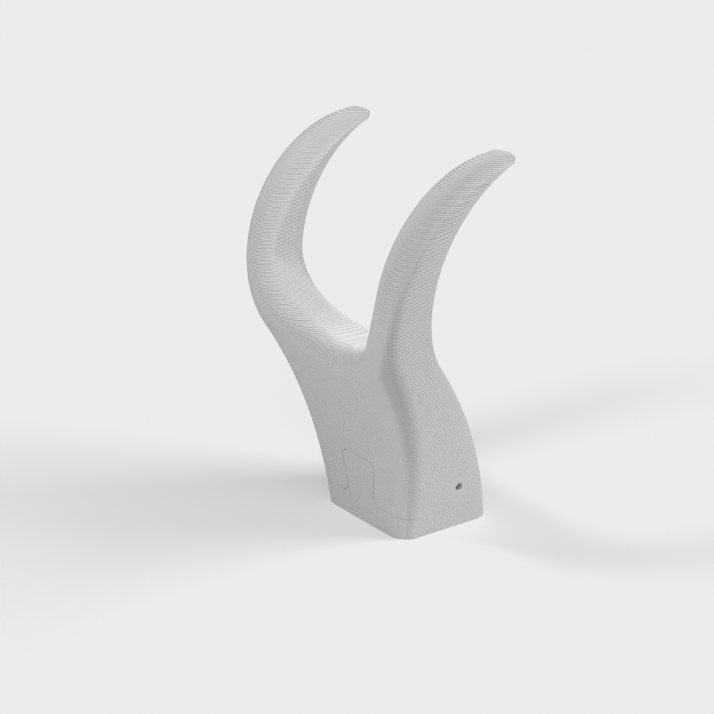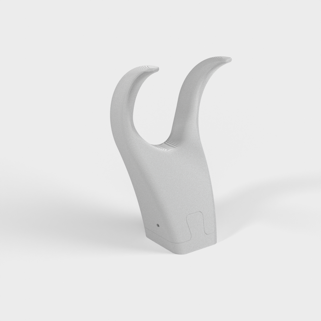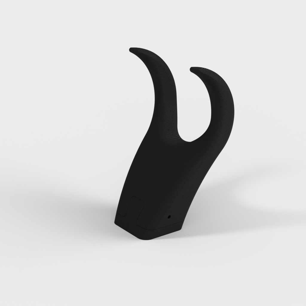Ett minimalistiskt väggfäste för ukulele. De två delarna kan separeras för utskrift. 0,005" spel är tillåtet i laxstjärten, vilket säkerställer en tät passning mellan de två delarna. Baksidan monteras på väggen med hjälp av gipsskruvar med ett 0,32" huvud och en rundad urtagning (filé). Ett litet hål i sidan av de två elementen låser dem säkert ihop via en liten stift, perfekt anpassad till en ändspik.