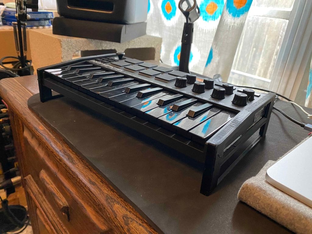 Detta är ett stativ för AKAI MPK Mini Keyboard, som höjer ditt tangentbord ca. 30 mm från bordet. Stativet förbättrar ergonomin och kan hjälpa till att minska smärta i handled och arm under långvarigt spelande. Priset är för ett set bestående av två hållare (2 st).