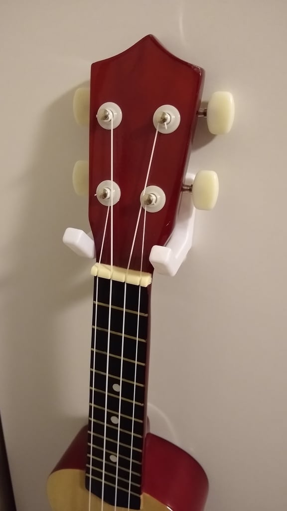 Enkelt ukulele väggfäste med hål för skruv. Denna produkt låter dig enkelt och säkert montera din ukulele på väggen, vilket kan hjälpa dig att organisera och skapa mer utrymme i ditt rum.