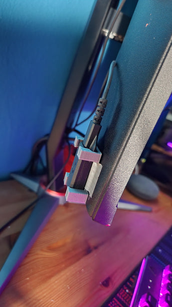 En musdongel håller för att förlänga din g-pro trådlösa mus från Logitech. Hållaren håller dongeln säker och ur vägen, vilket säkerställer en bra anslutning. Hållaren kan enkelt fästas på baksidan av din skärm eller någon annan bekväm plats med lite tejp.