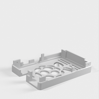 Detta är ett fall för Raspberry Pi, som är en dator i kreditkortsstorlek. Fodralet är designat med flera nivåer och med plats för komponenter och GPIO-kontakter. Genom att hålla en liten marginal vid hålen för komponenter säkerställer vi att de alltid passar. Den har även möjlighet till öppen logotyp och PCB-hållare.