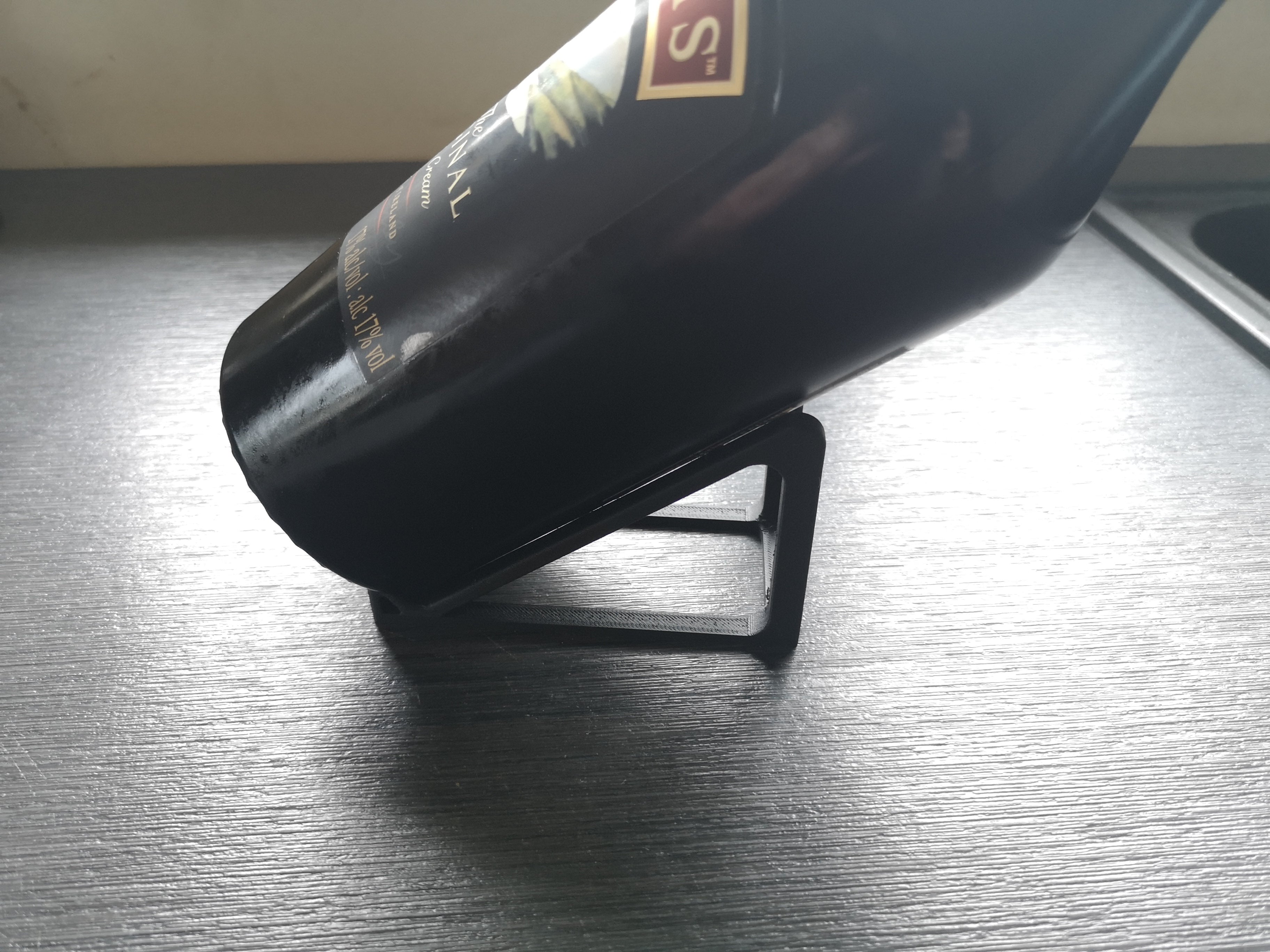 Detta displayställ är utformat för att presentera dina flaskor på ett unikt och elegant sätt. Flaskan är placerad i en 35° vinkel, vilket framhäver innehållet utan att stativet tar fokus. Designen är medvetet minimalistisk och diskret för att låta flaskan vara det primära fokuset.