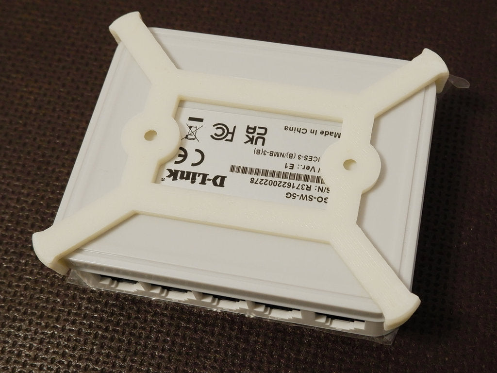 Minimalistiskt väggfäste för en D-Link GO-SW-5G switch.