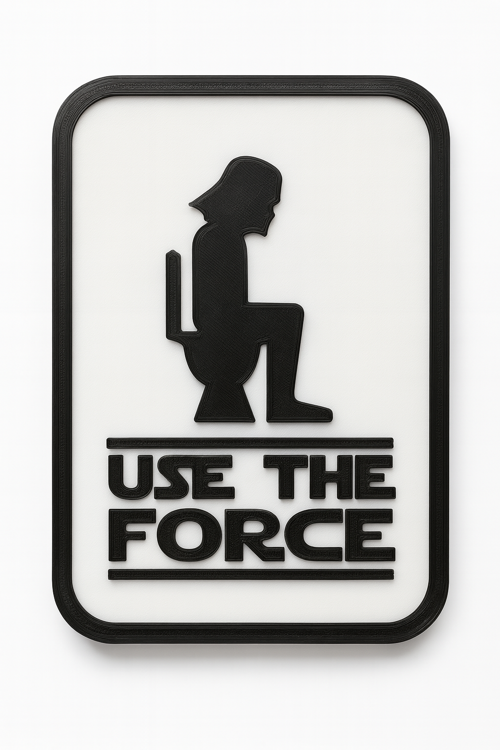 Dyk ned i galaksens mørke med denne vægkunst inspireret af Darth Vader. "Use the Force - Toiletskilt" er en fremragende tilføjelse til dit hjem eller kontor og giver en sjov og sci-fi-inspireret atmosfære. Dette 2D-værk illustrerer den ikoniske karakter i en stil, der vil appellere til både fans og elskere af universet.