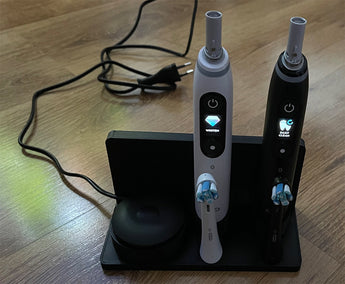 Enkel hållare för 2 st Oral-B iO serie 7, 8 och 9 tandborstar och 1 laddare.