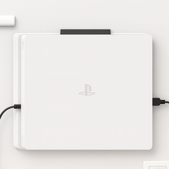 - Kompakt väggfäste speciellt utformat för PlayStation 4 Slim-konsolen.