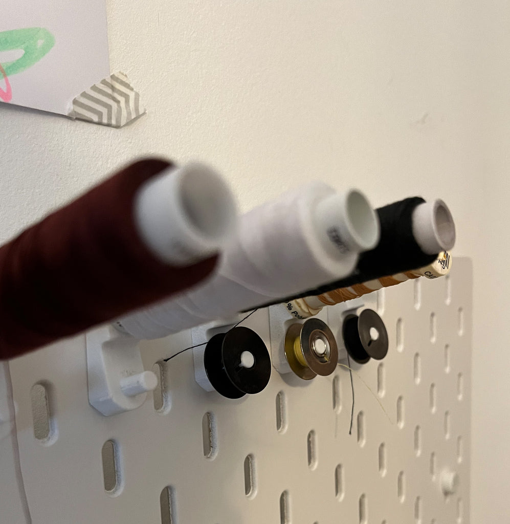 IKEA SKADIS sytrådshållare är den idealiska lösningen för att hålla ordning på dina trådrullar. Med denna hållare kan du enkelt organisera både stora och små rullar av garn, vilket hjälper dig att undvika att blanda ihop färger, som t.ex. marin och svart. Hållaren är designad för att passa perfekt med ditt IKEA SKADIS arrangörssystem, vilket gör det enkelt att skapa en snygg och funktionell arbetsyta för ditt handarbete.