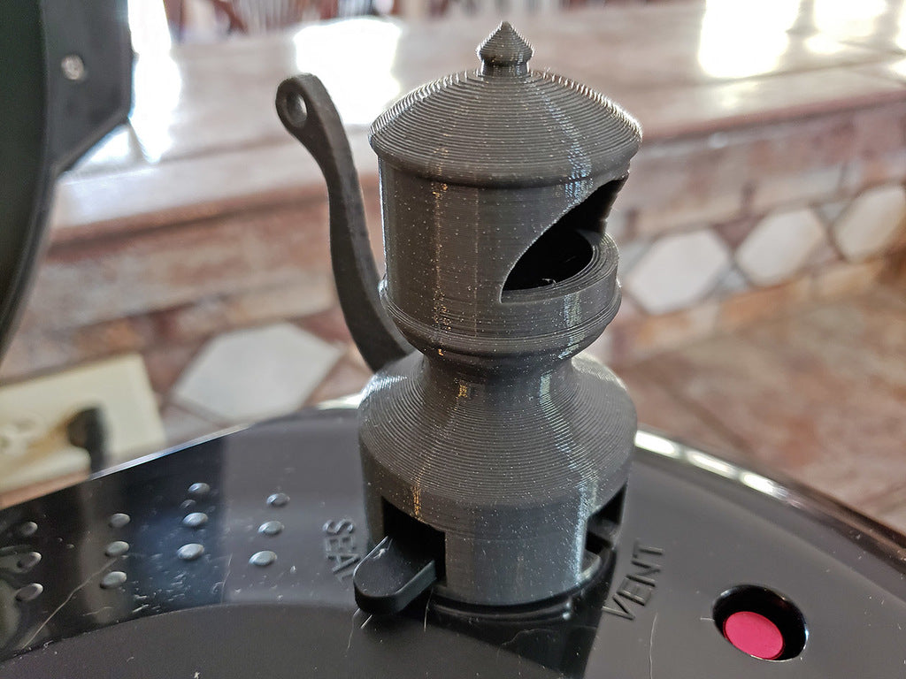 Denna ångavledare är speciellt utformad för din Ninja Foodi tryckkokare och fästs enkelt på "Seal/Vent"-ventilen. Den hjälper till att säkert leda bort den frigjorda ångan från dina överskåp och väggar, vilket skyddar din köksmiljö från fukt. Förutom sin praktiska funktion har avledaren en unik design som påminner om en klassisk ångloksvissla, vilket ger ditt kök ett charmigt inslag.
