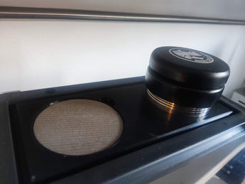Detta är ett praktiskt vattenskydd för Gaggia Classic, utformat med skåror som gör att du enkelt kan förvara ditt tamper- och puckskydd. Skyddet passar perfekt till din kaffemaskin och bidrar till en snygg och effektiv arbetsplats för kaffeälskare.