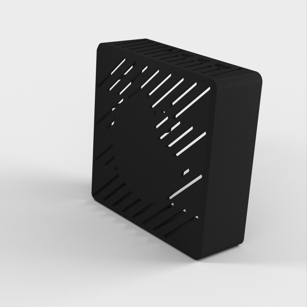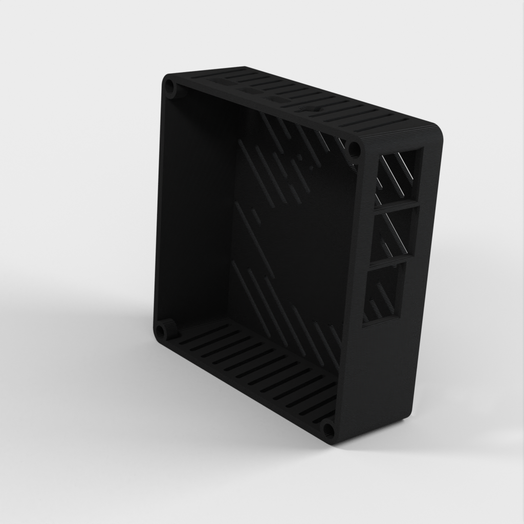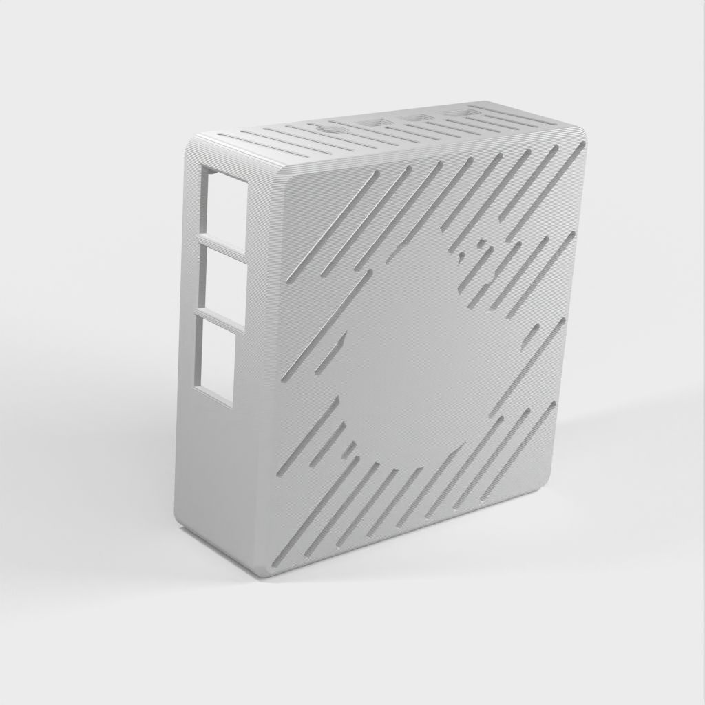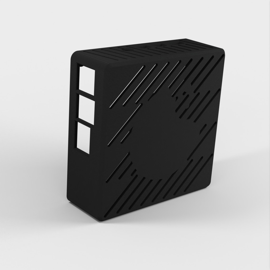 Fodral för Raspberry Pi 3 eller 4 (tunn klient). Detta fodral är utrustat med en enkel fläkt inuti för att hålla allt svalt. Den hålls samman med hjälp av 5x3 mm magneter, och inkluderar ett 100x100 mm mönster för VESA på baksidan/botten. Perfekt för dig som vill skydda din Raspberry Pi och samtidigt säkerställa optimal kylning.