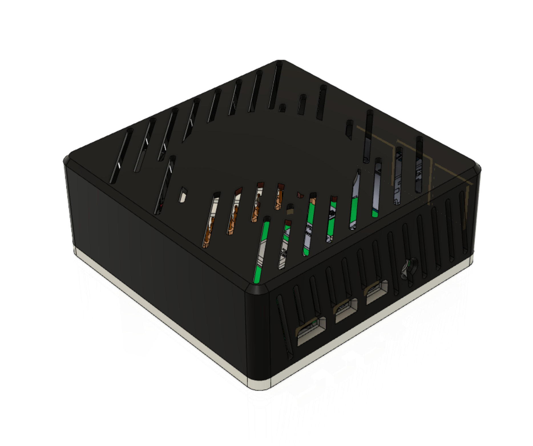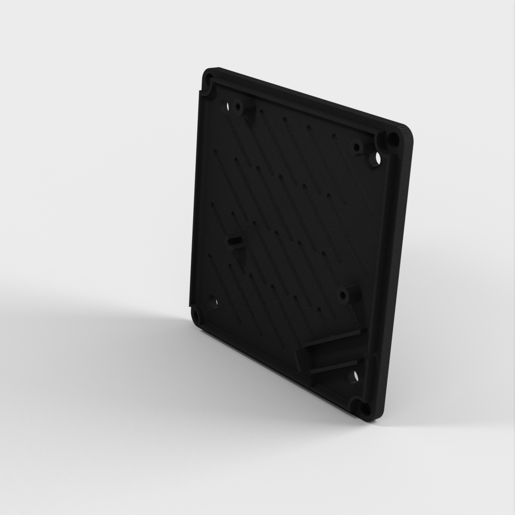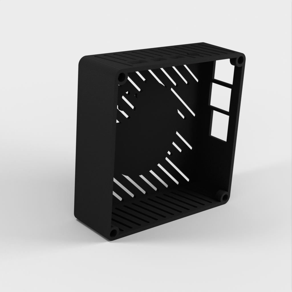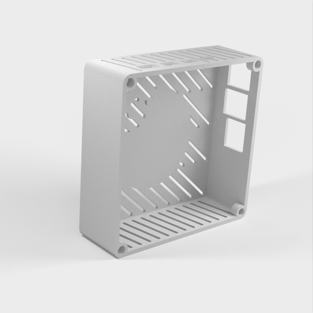 Fodral för Raspberry Pi 3 eller 4 (tunn klient). Detta fodral är utrustat med en enkel fläkt inuti för att hålla allt svalt. Den hålls samman med hjälp av 5x3 mm magneter, och inkluderar ett 100x100 mm mönster för VESA på baksidan/botten. Perfekt för dig som vill skydda din Raspberry Pi och samtidigt säkerställa optimal kylning.