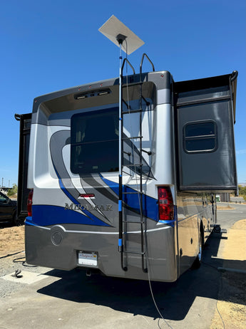 Detta monteringssystem är utformat för att säkert fästa din StarLink Gen3 Dishy-panel på en bakmonterad stege på din husbil. Satsen består av två robusta fästen och en adapter som är utformad för att fungera med StarLink-röradaptern och en standard teleskopisk förlängningsstång (båda säljs separat).