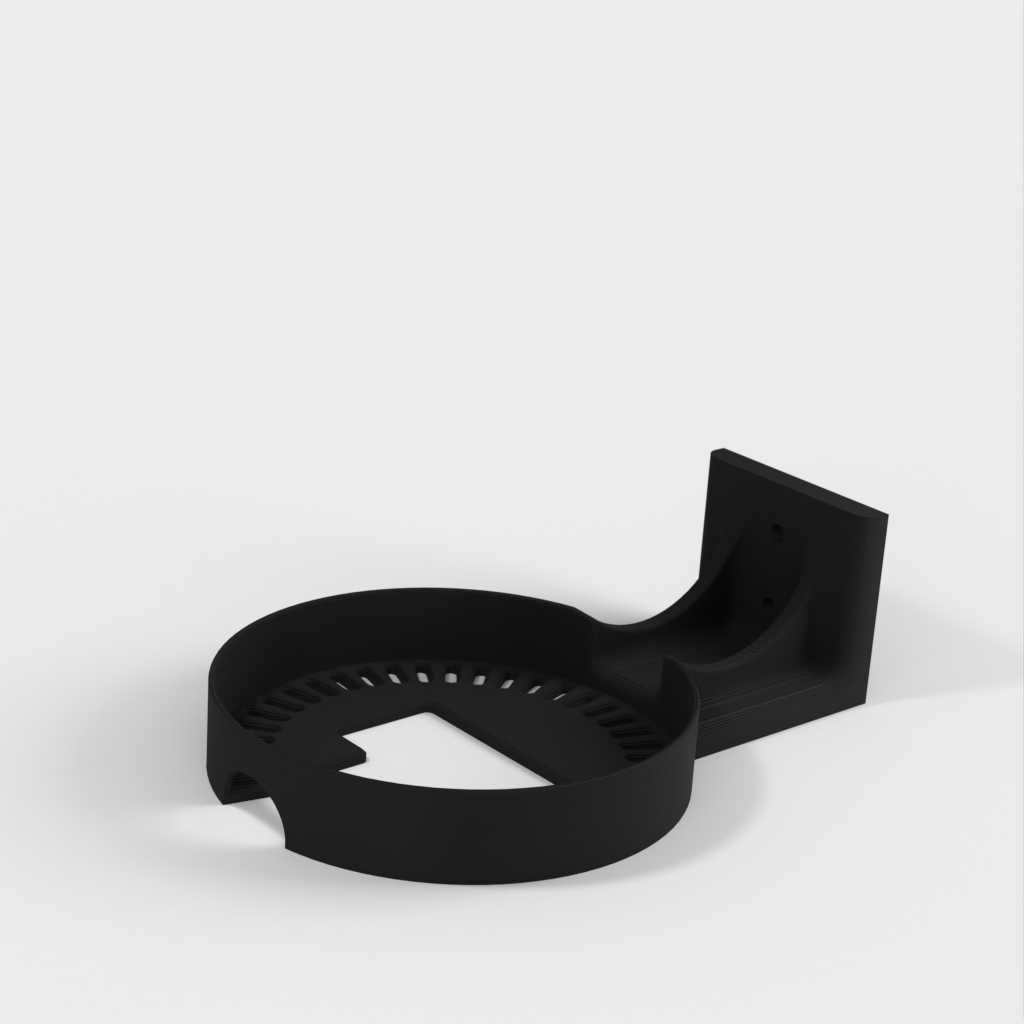 Enkelt väggfäste för TP-Link router med öppning för statuslampan. Upphängningen ger även fritt utrymme för kablarna på baksidan av routern.