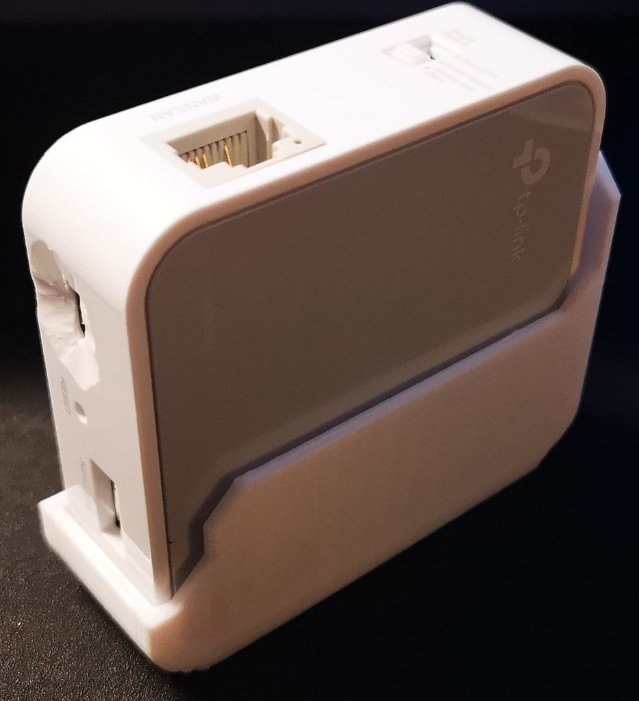 Detta är ett väggfäste för TP-Links TL-WR902AC travel wifi router med två (2) M3 försänkta skruvhål för montering med M3 träskruvar eller annan M3 storlek och försänkt.