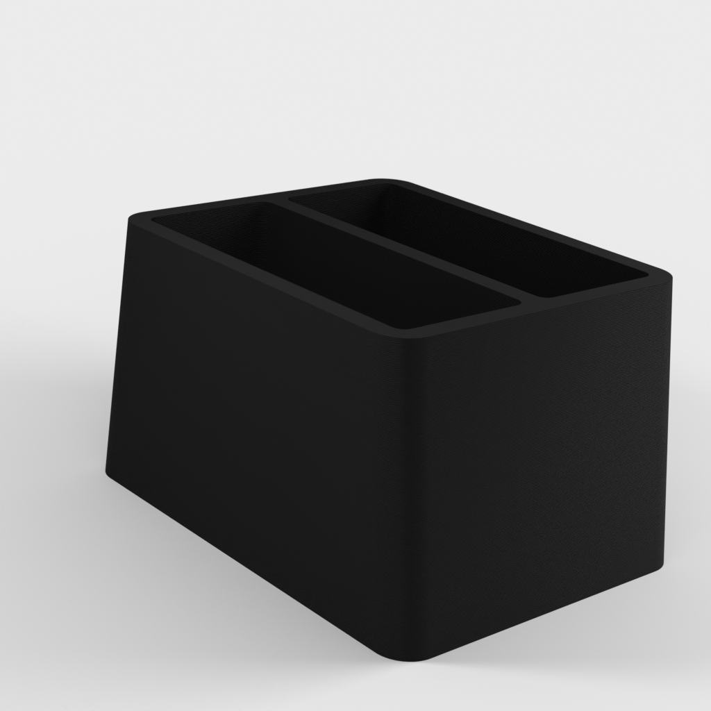 Denna universella hållare är utformad för att ge en praktisk förvaringslösning för fjärrkontroller till din TV och soundbar. Med den här hållaren kan du enkelt samla och organisera dina fjärrkontroller på ett ställe, vilket hjälper till att minska röran i ditt vardagsrum. Produkten är utrustad med en halkfri bas som säkerställer att hållaren förblir stabil och inte glider runt på ytor. Den kompakta formen gör den lämplig för placering på ett soffbord, TV-stativ eller hylla, så att dina fjärrkontroller alltid är nära till hands när du behöver dem.