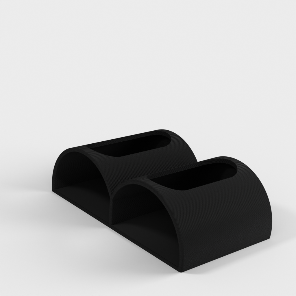 Denna praktiska väggmonterade hållare är utformad för att ge en permanent och organiserad plats för fjärrkontrollerna till din Roku TV och Vizio soundbar. Med den här lösningen slipper du röran och frustrationen med att leta efter dina fjärrkontroller, eftersom de alltid finns inom räckhåll. Hållaren monteras diskret på sidan av ett sidobord eller liknande yta, vanligtvis med dubbelhäftande tejp, vilket säkerställer att dina fjärrkontroller förblir inom räckhåll men utom synhåll. Detta bidrar till en snygg och organiserad boendemiljö där funktionalitet möter estetik.