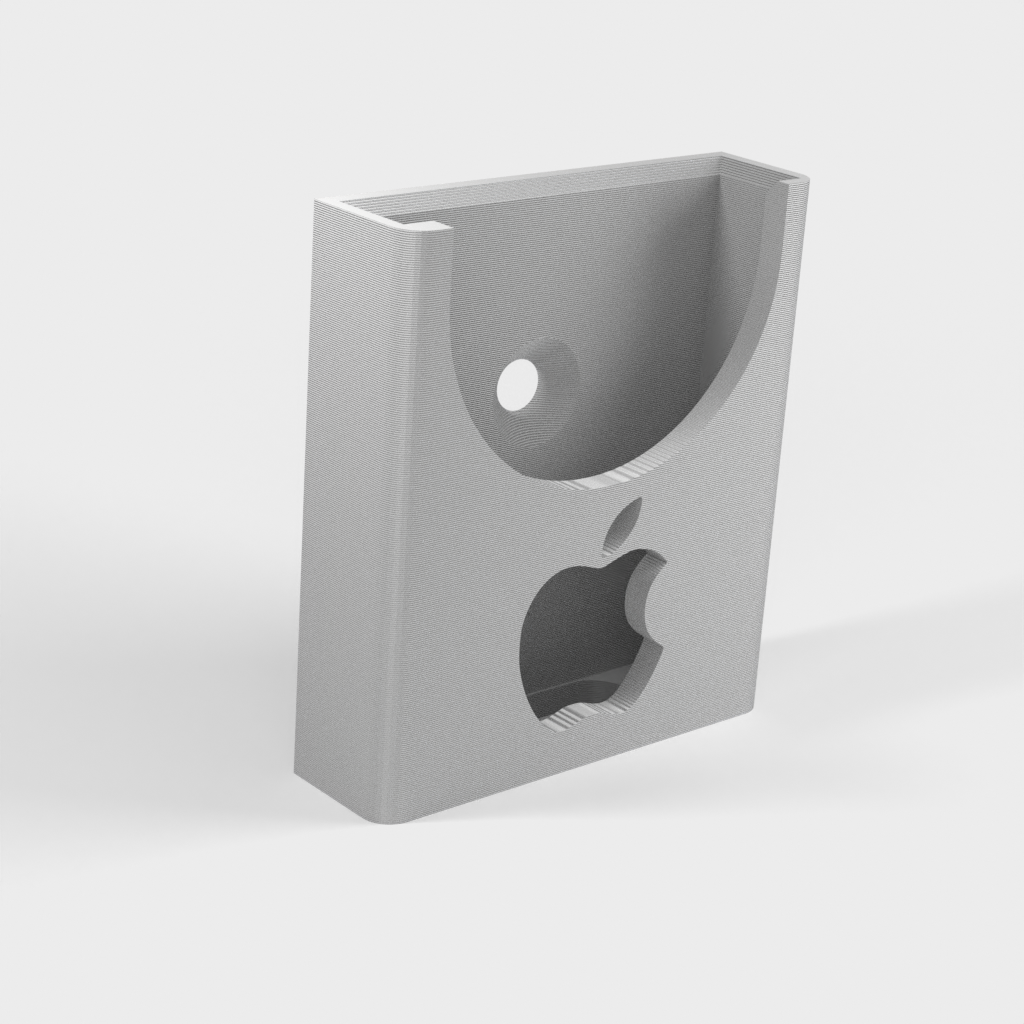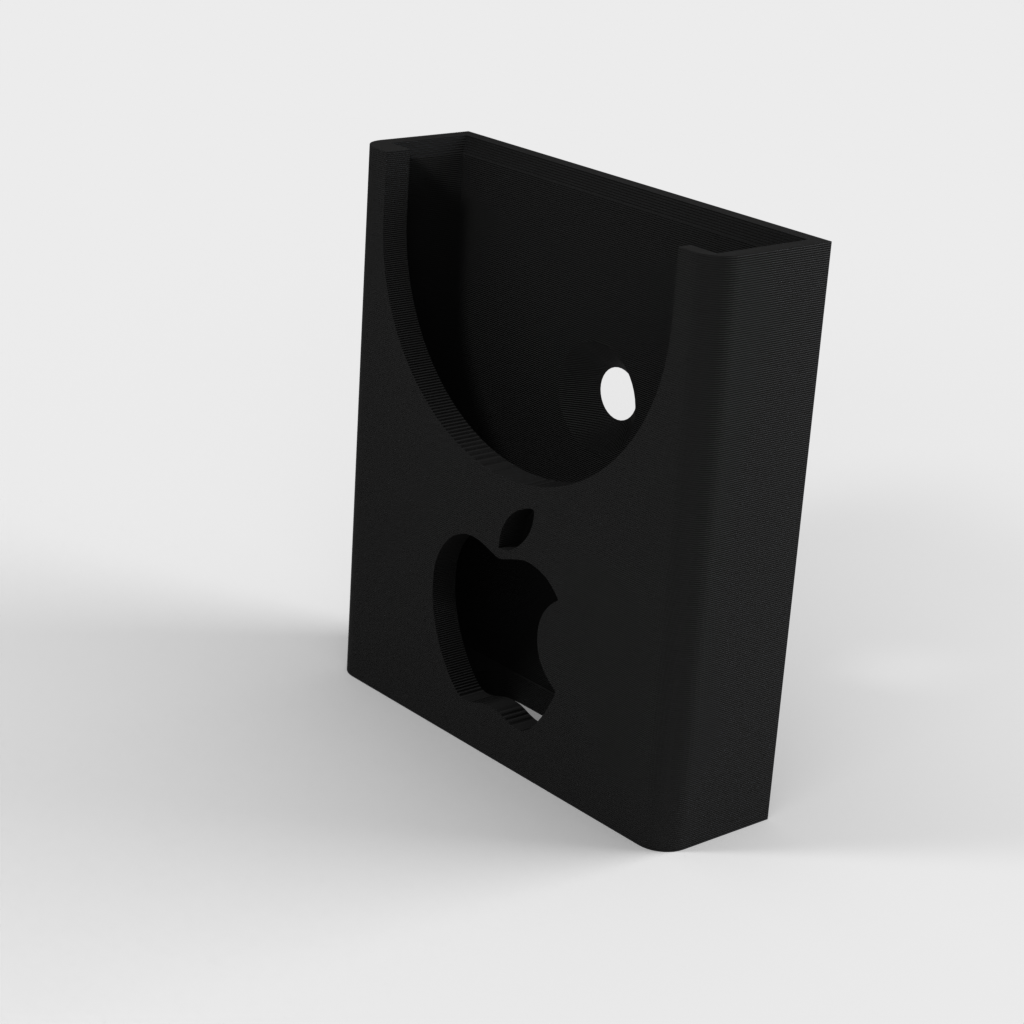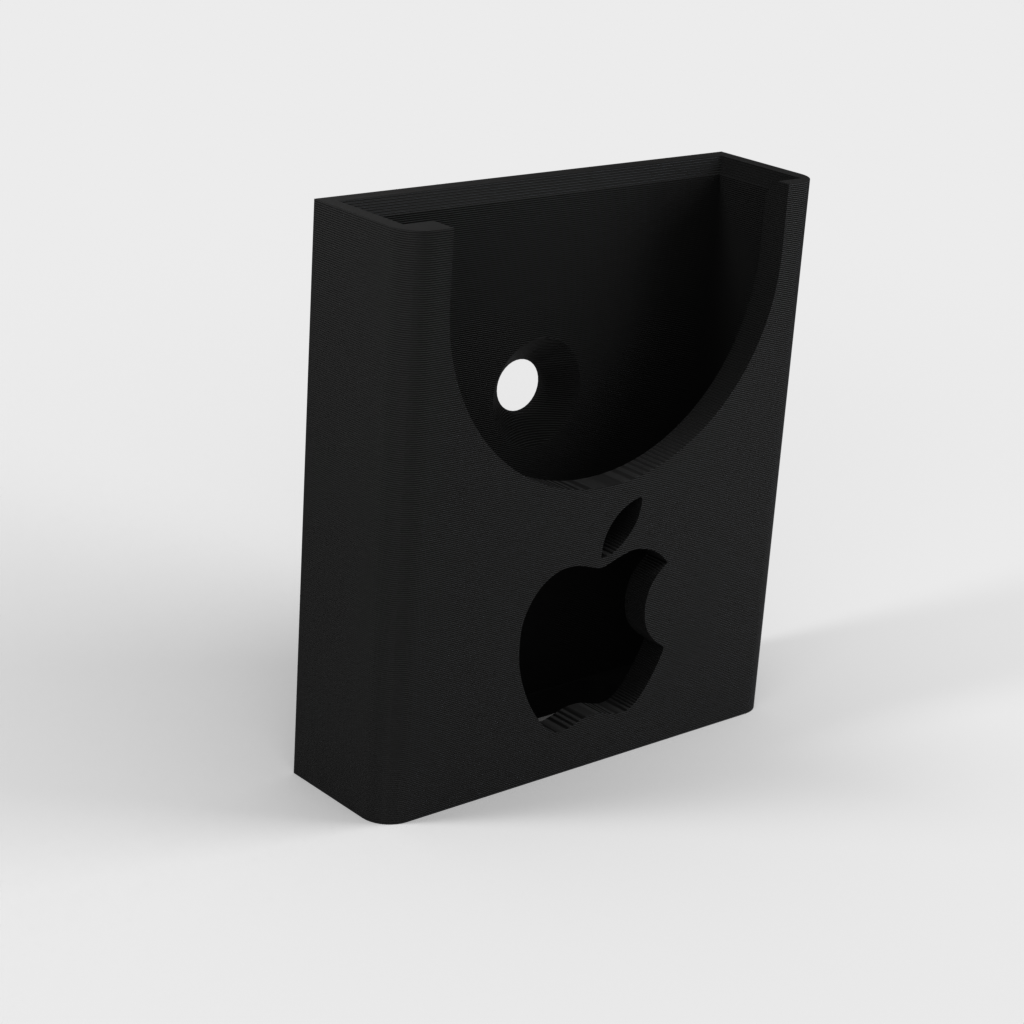 Apple TV fjärrkontrollhållare för användning med "Seri Remote". Den ger dig 0,02" spelrum fram och bak. Det finns också en öppning för laddningskabeln under. Denna hållare ser till att fjärrkontrollen alltid finns på ett ställe, så att du aldrig tappar bort den igen. Den kan enkelt fästas på vägg, och dess kompakta design gör att den inte tar mycket plats.