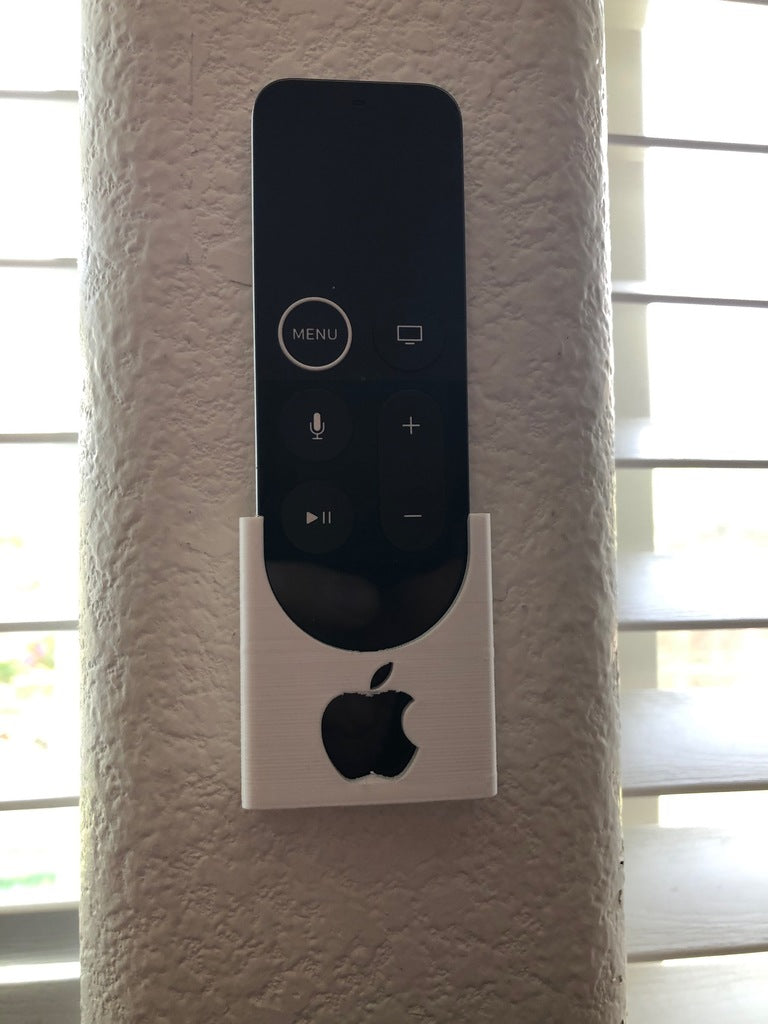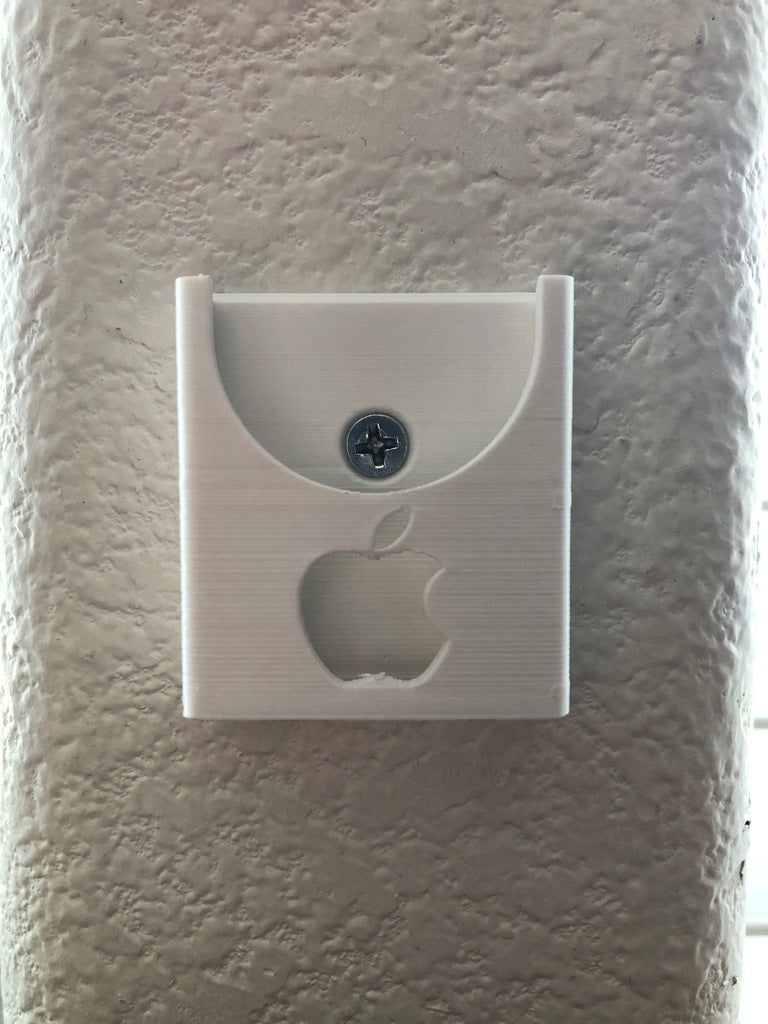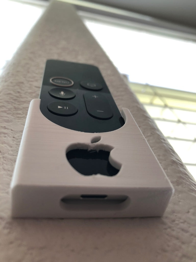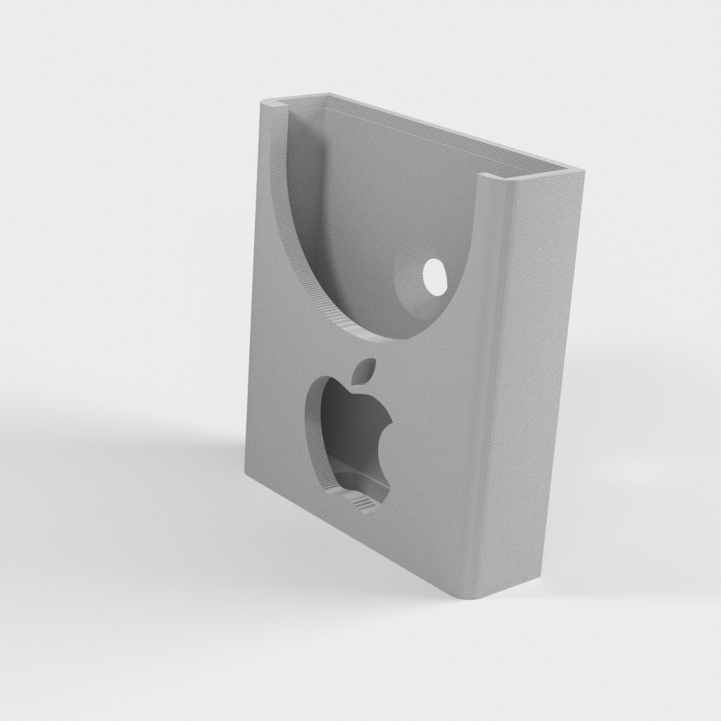 Apple TV fjärrkontrollhållare för användning med "Seri Remote". Den ger dig 0,02" spelrum fram och bak. Det finns också en öppning för laddningskabeln under. Denna hållare ser till att fjärrkontrollen alltid finns på ett ställe, så att du aldrig tappar bort den igen. Den kan enkelt fästas på vägg, och dess kompakta design gör att den inte tar mycket plats.