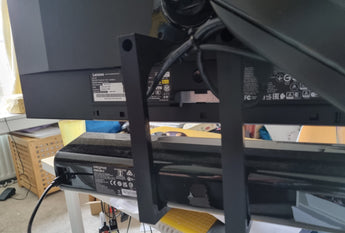 För maximal stabilitet, särskilt om din monitor är monterad på en dynamisk arm, kan det vara bra att applicera lite dubbelhäftande tejp på hyllans yta för att förhindra att din soundbar rör sig. Denna lösning är perfekt för dig som vill integrera sin ljudutrustning sömlöst med sin monitoruppsättning och uppnå ett rent och professionellt utseende.