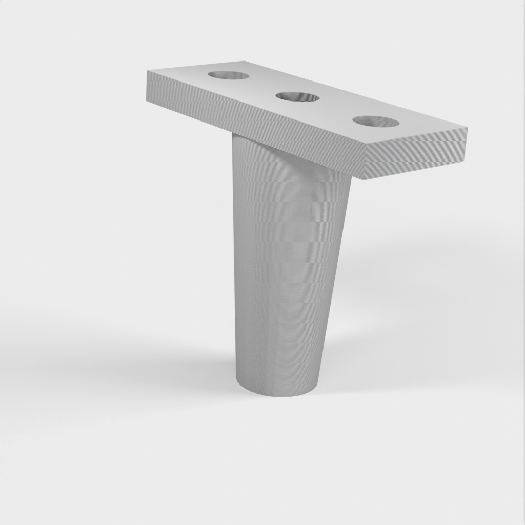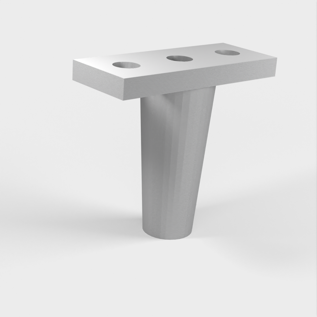 Höjden på distansen är 3 cm. Måtten på basen är 30x12x4mm. Det finns 3 hål för 4 mm skruvar.