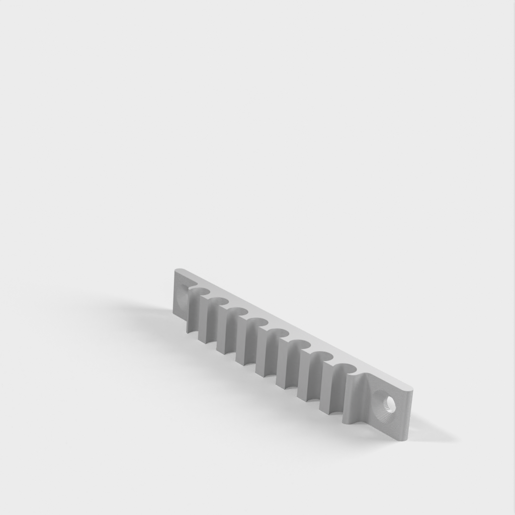 8-tråds väggfäste är perfekt för att organisera kablar på ytan av en vägg. Denna klämma är idealisk för att hålla dina kablar raka och organiserade. Dess hål kan rymma kablar som är 7 mm stora, inklusive TV-koaxialkabel, Ethernet-kabel och 14AWG 2-trådshögtalarkabel. Detta är en bra lösning för att hålla ditt garageområde snyggt och snyggt.