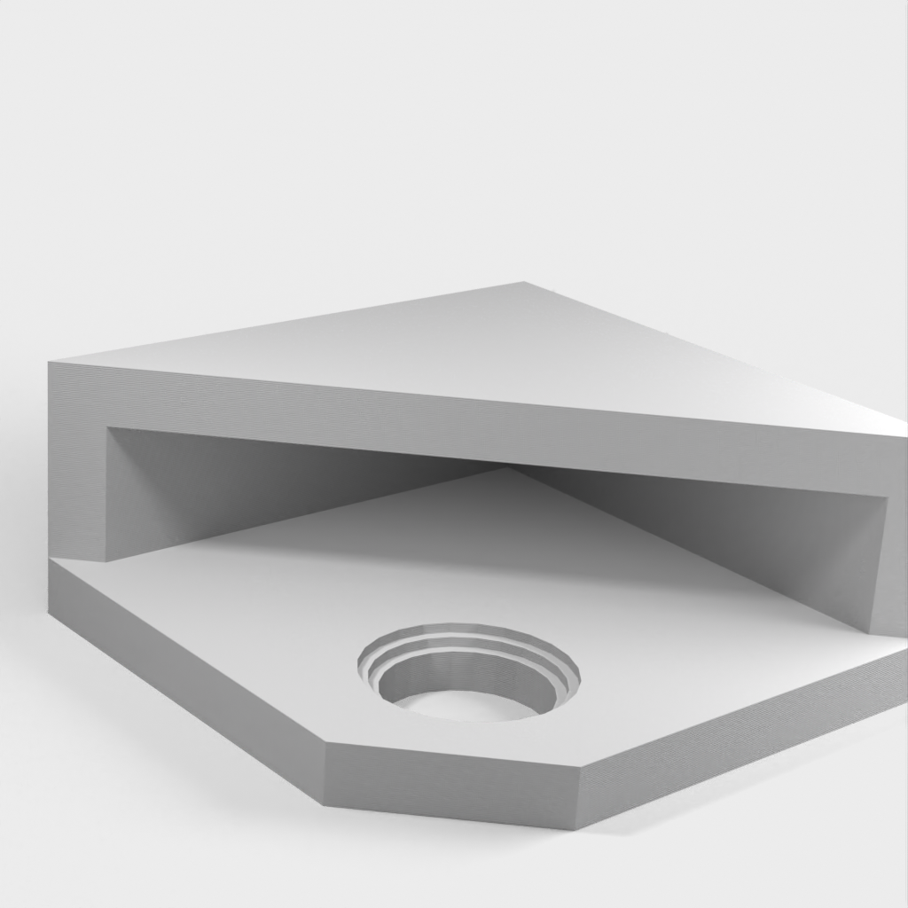 Detta är ett enkelt hörnfäste för en 3mm spegel, plexiglas eller liknande. Det är perfekt om du har en spegel som är tänkt att limmas på en vägg, men du inte vill limma något direkt på väggen.