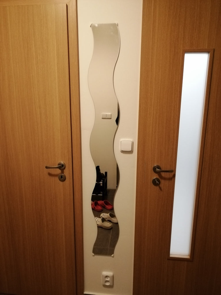 Utrymmet i fästet är 3,5 mm, så det finns tillräckligt med utrymme för antingen ett skruvhuvud eller en spik utan onödigt utrymme mellan vägg och spegel. Den är designad för att vara enkel att skriva ut.