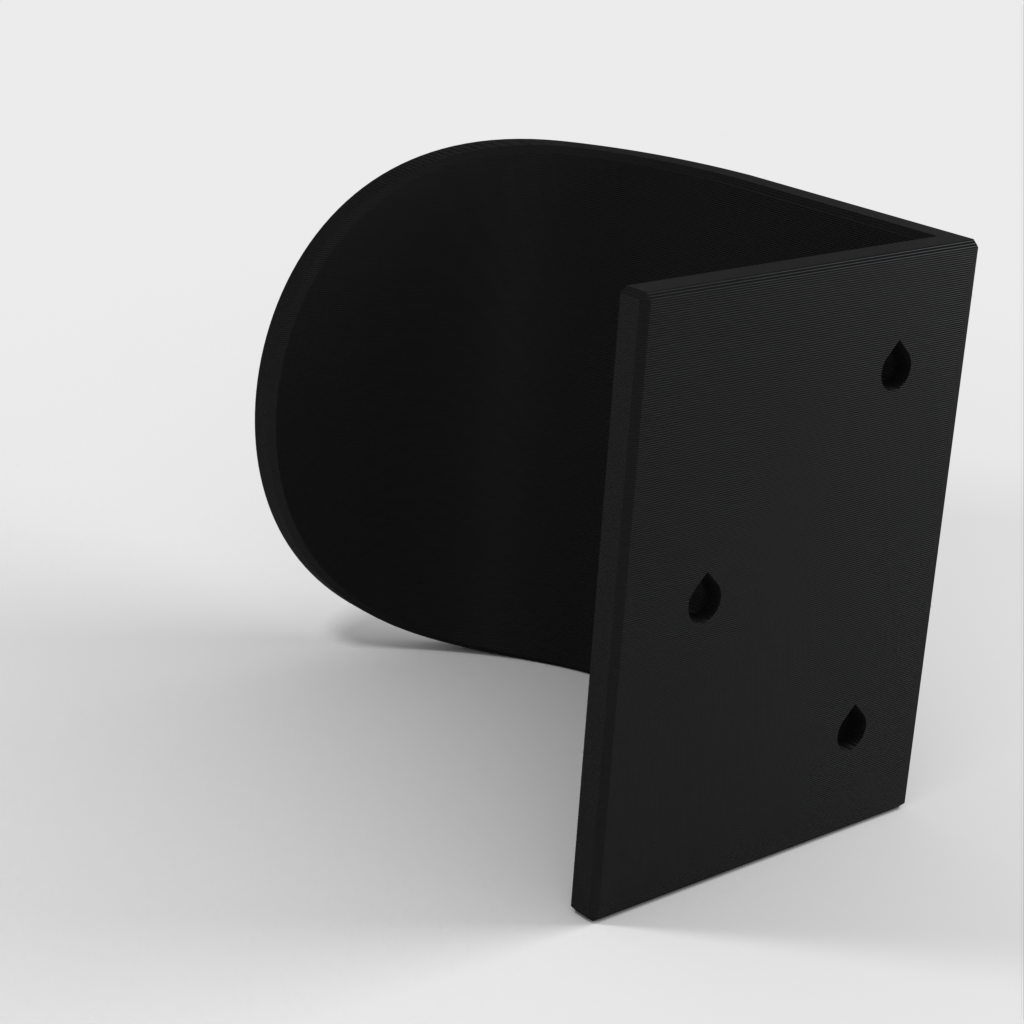 Monteras med 3 skruvhål eller med monteringstejp. Jag har använt Gorilla dubbelsidig monteringstejp och tejpen har hållit upp med 3 barn som konstant använder den.