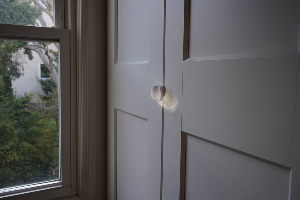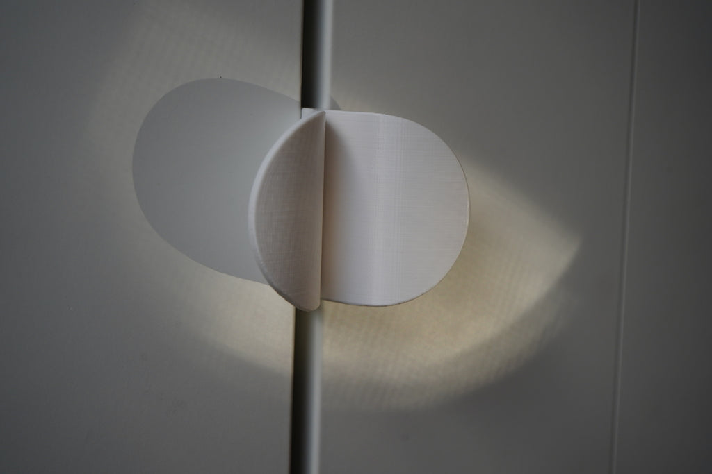Vår Ikea Pax-uppställning har speglar på ett av skåpen, men alla handtagsalternativ var gjorda av metall vilket kan förstöra spegeln! Designat handtag matchar metallhandtagen som följde med spegelskåpsdörrarna.