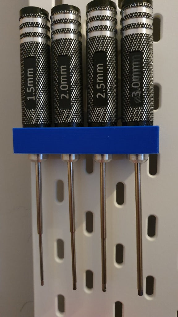 Sexkantskruvmejselhållare till Ikea Skadis. Denna hållare gör det enkelt att organisera din arbetsplats eller verkstad. Den är enkel att montera direkt på en Skadis-panel vilket gör din arbetsplats mer organiserad och städad. Ett praktiskt tillskott till vilken verkstad eller kontor som helst.