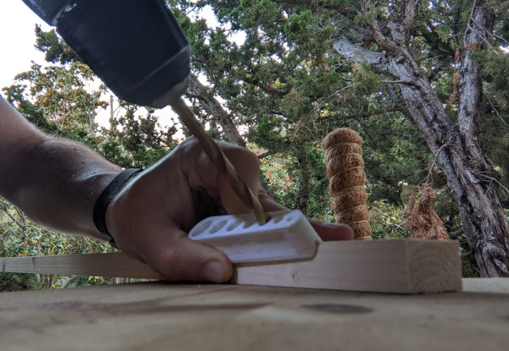 Kom ihåg att hålla på medan du borrar - vi vill inte att någon slår sönder sina fingrar för att de tappade koncentrationen och borrkronan fastnade.