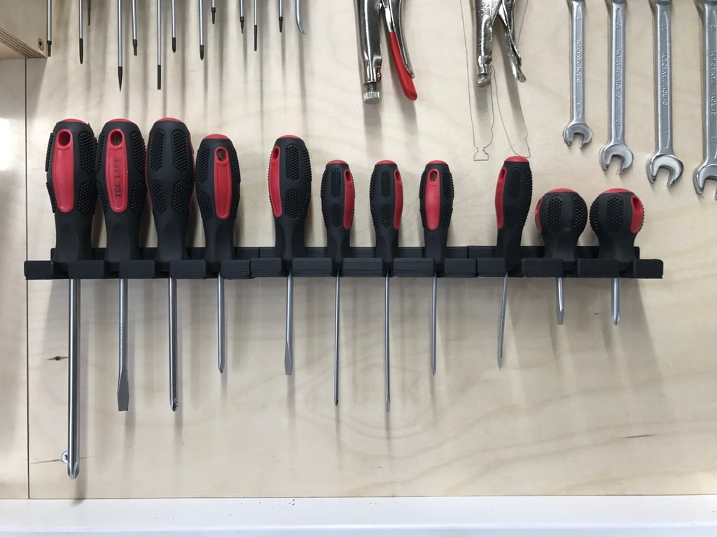 Skruvmejselhållare är den bästa lösningen för att organisera och hålla ordning på dina skruvmejslar. Enkel förvaring av dina skruvmejslar gör dem lättillgängliga när du behöver dem. Hållaren kan justeras efter behov med hjälp av den medföljande Onshape-länken, vilket gör den idealisk för både privata verkstäder och professionella arbetsplatser.